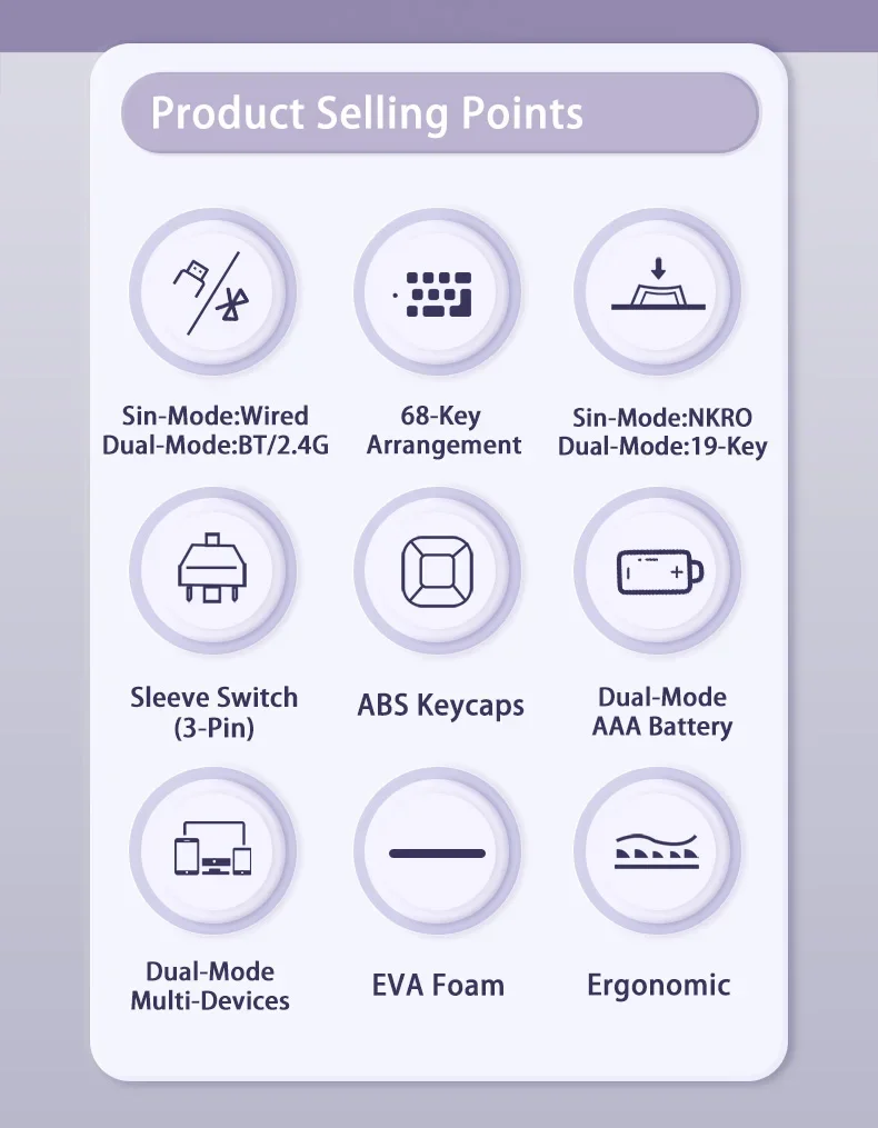 68-Key Standard :This keyboard adheres to the standard 68-key layout, providing all the necessary keys for a seamless typing experience.