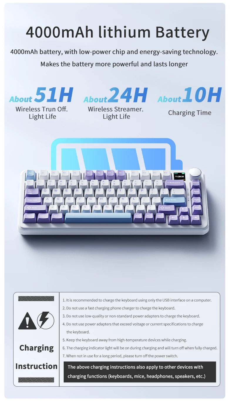 ・4000mAh lithium Battery:With low-power chip and energy-saving technology. Makes the battery more powerful and lasts longer