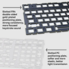 Slotted FR4 double-sided gold-plated positioning plate,strong consistency, more focusedkeystroke sound.Slotted Pc positioning plate,softer and more elastic, better light transmission.