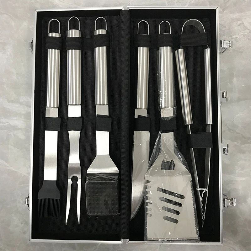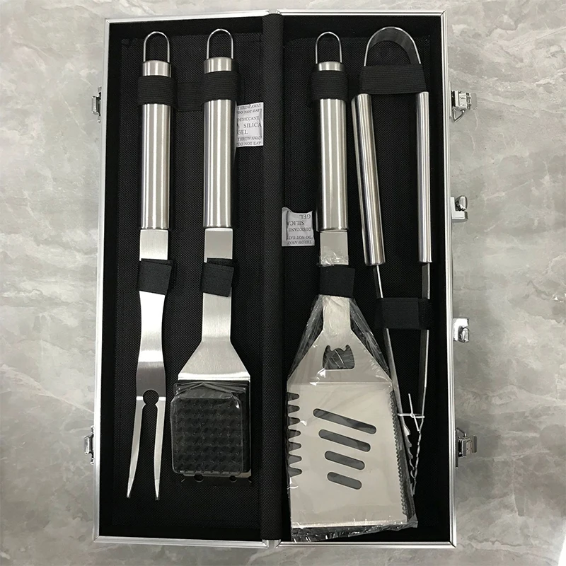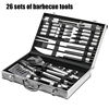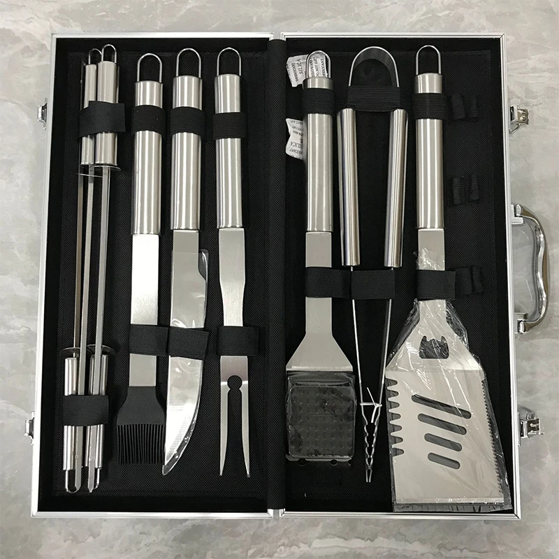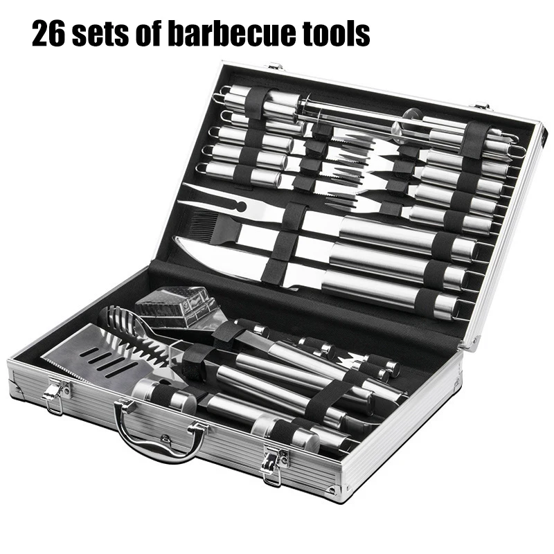 Aluminium case barbecue tools set stainless steel outdoor grilling utensils knife fork spatula clip sweep BBQ grilling utensils
