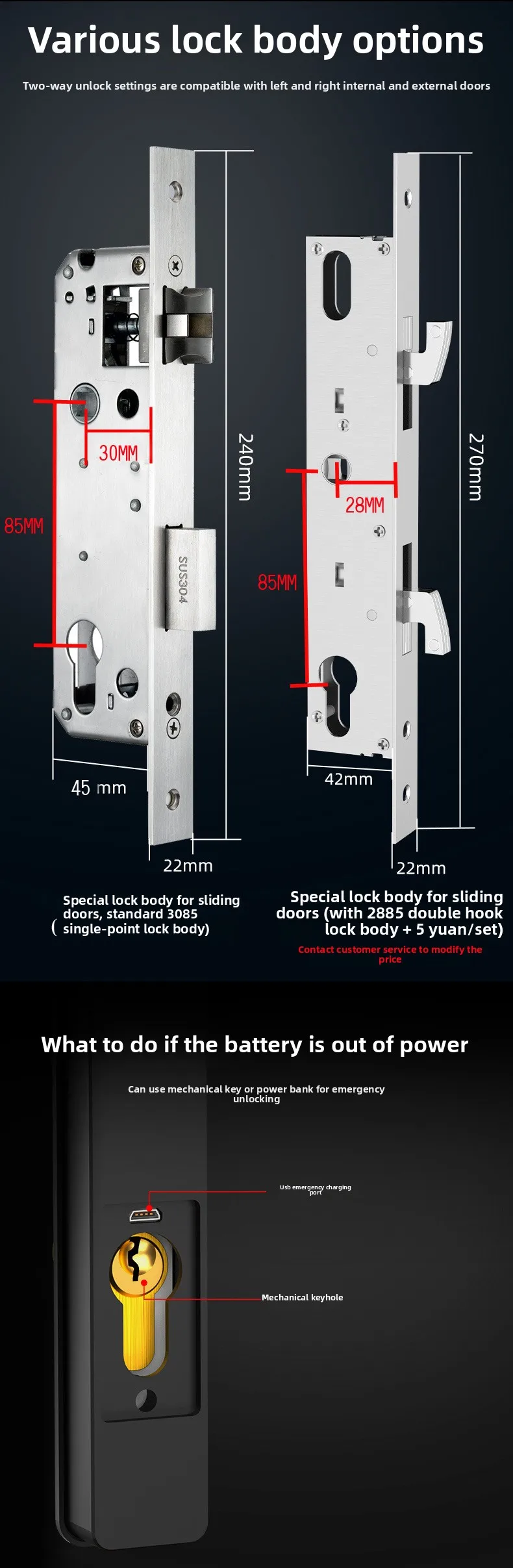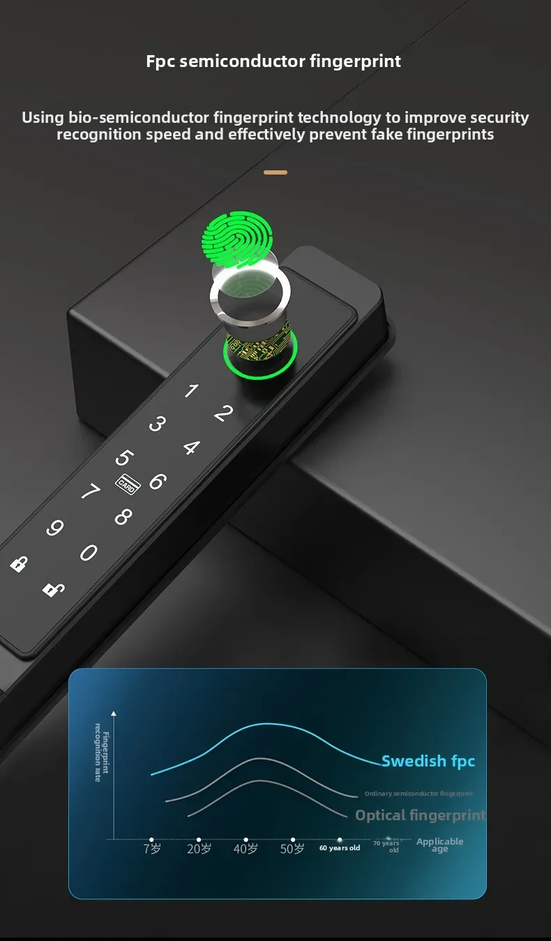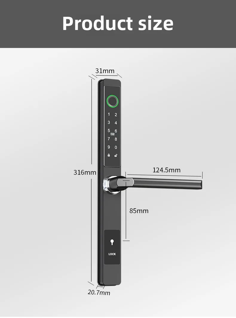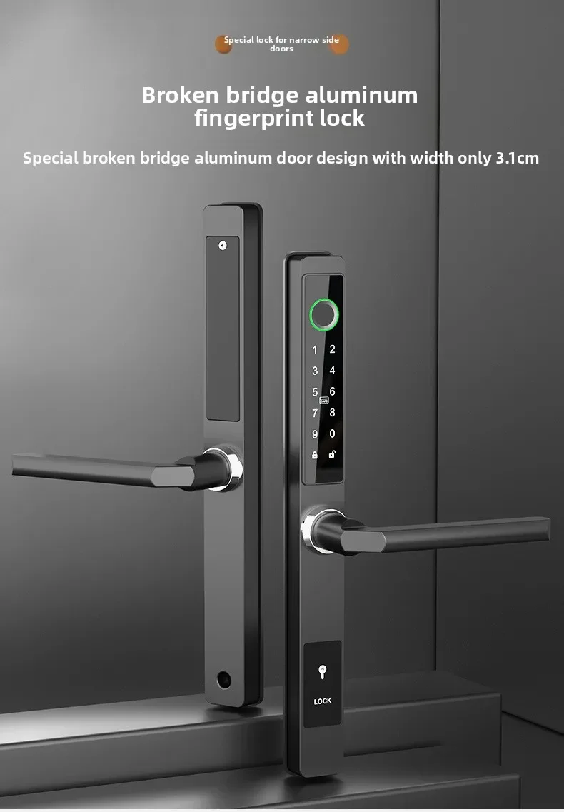 Aluminium Sliding Door Waterproof Smart Fingerprint Lock-Insulated APP-Controlled with Keypad, Slim Edge Design for Swing Gate
