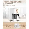 - THIS IS DEFINITELY AN ESSENTIAL ART PIECE FOR YOUR DELICATE LIFE. AMASTE Retro Style Coffee Machine with Glass coffee pot with a classy design, it can perfectly ornament your kitchen, living room, and office. This Coffee Maker enables you to enjoy your favorite kinds of coffee such as cappuccinos and lattes. Also, the drip coffee machine doesn’t hog too much space with the size of 6.3”*7.8”*10.8”, so you are able to carry it to any place.