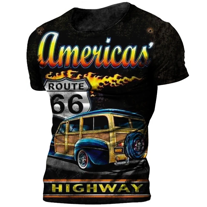 American Retro Men’s T-shirts 3d Route 66 Print Short Sleeve Tops Modern Girl T Shirt For Mens Motorcycle T-shirts Oversized Tee