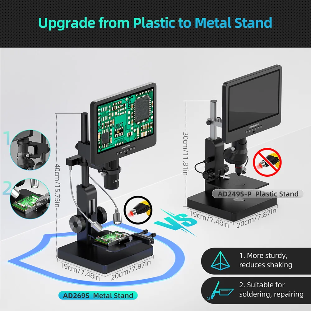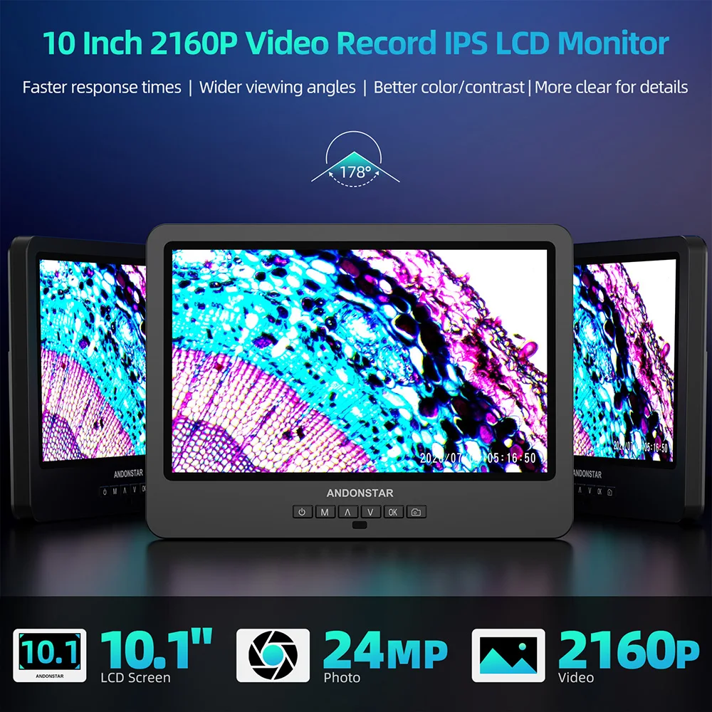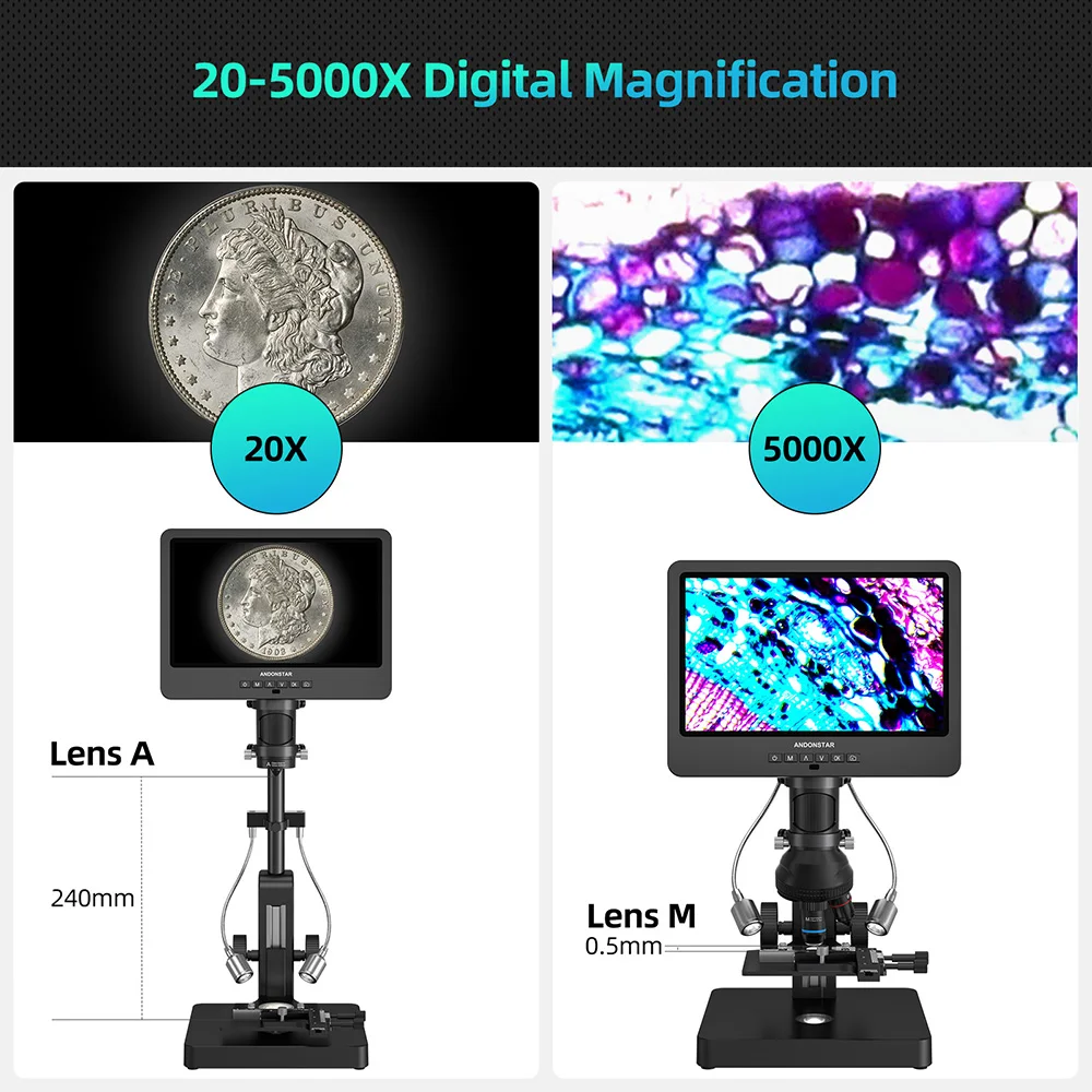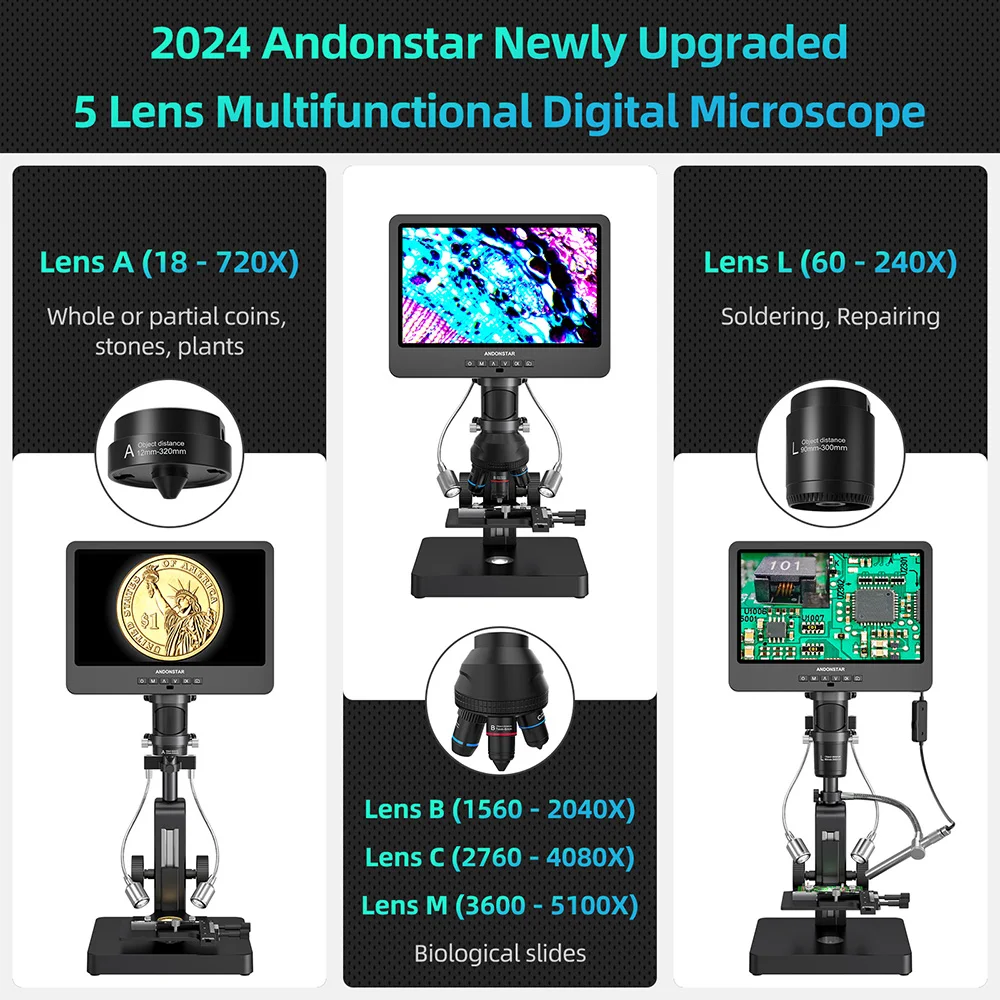 Andonstar AD269S with Endoscope UHD 2160P HDMI Digital Microscope 5000X 10.1 inch LCD with 5 Lens Home Lab Biological Microscope
