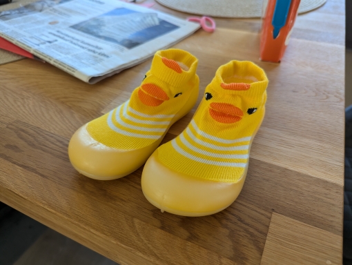 A very good solution to walk around the house in winter and isolate my baby's feet from the cold ground. Easy to put