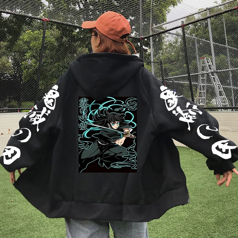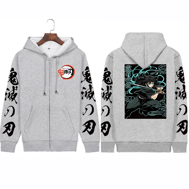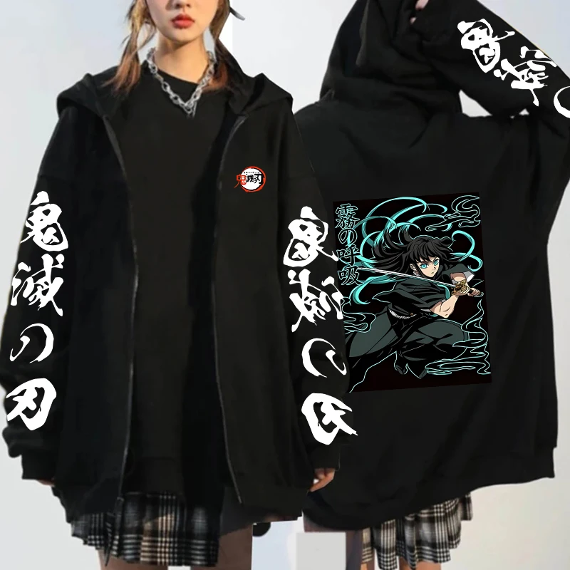 Anime Demon Slayer zipper Hoodies Tokitou Muichirou Men Women Sweatshirt With Zipper Harajuku Long Sleeve Zip Up Jacket coat