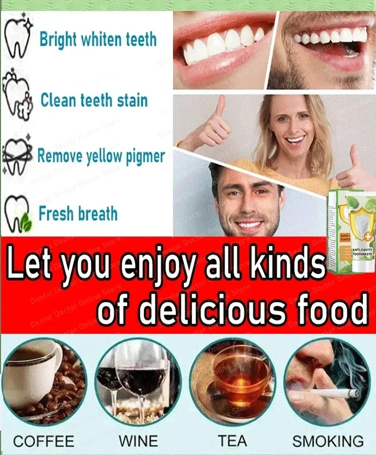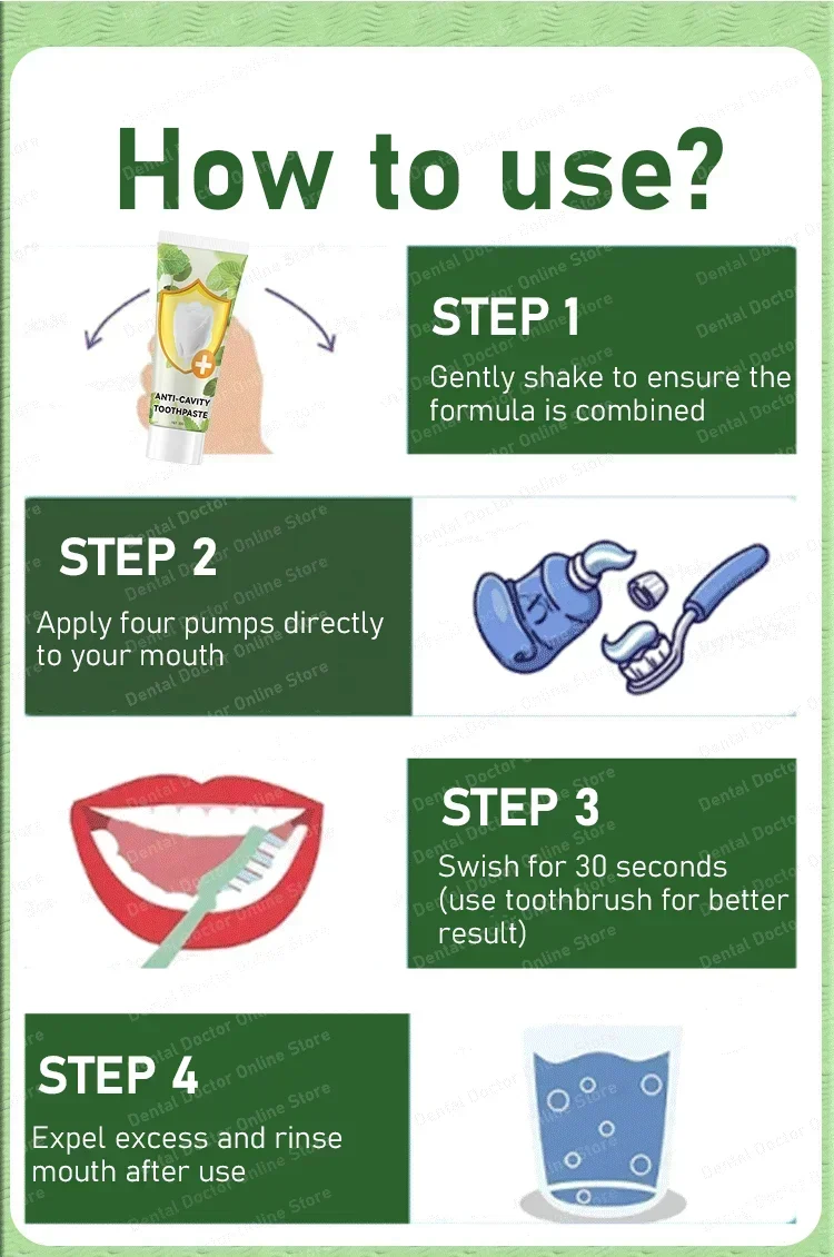 1,【Deep Clean Teeth】The toothpaste penetrates the teeth gaps in the enamel to remove food particles and deep stains embedded in them.