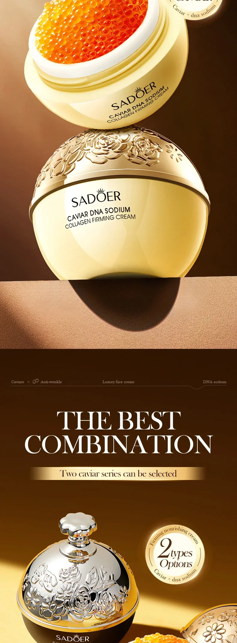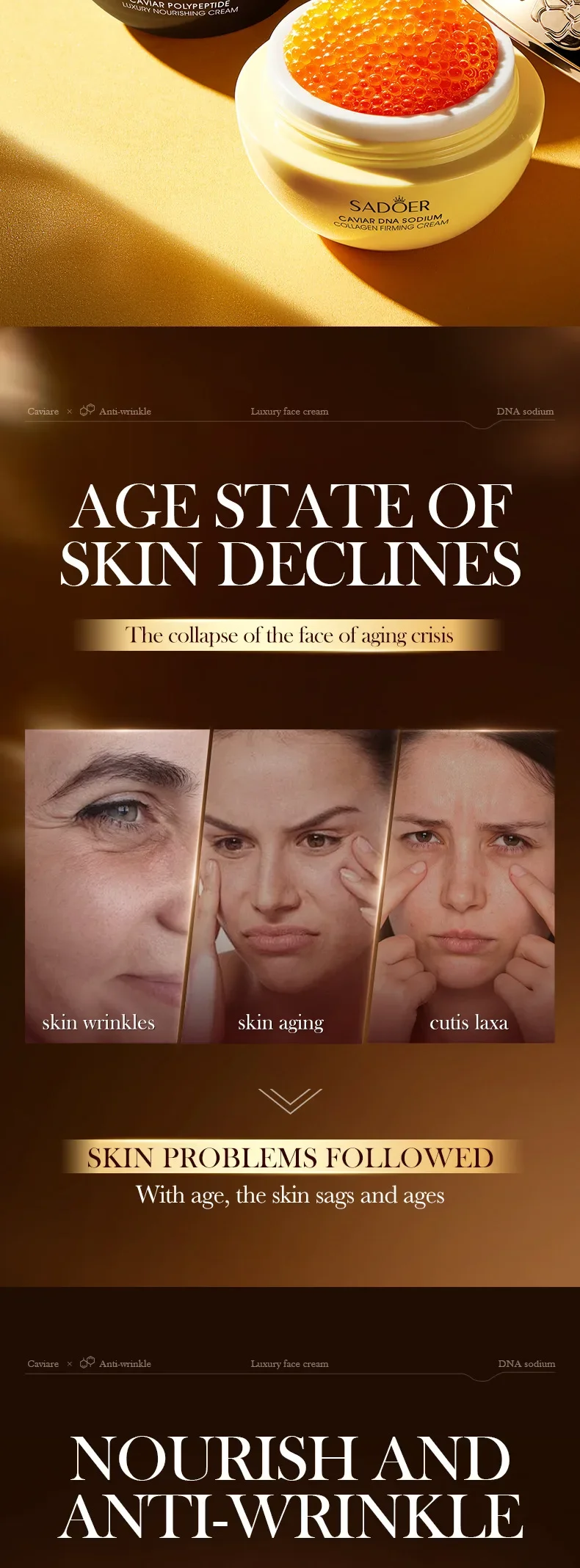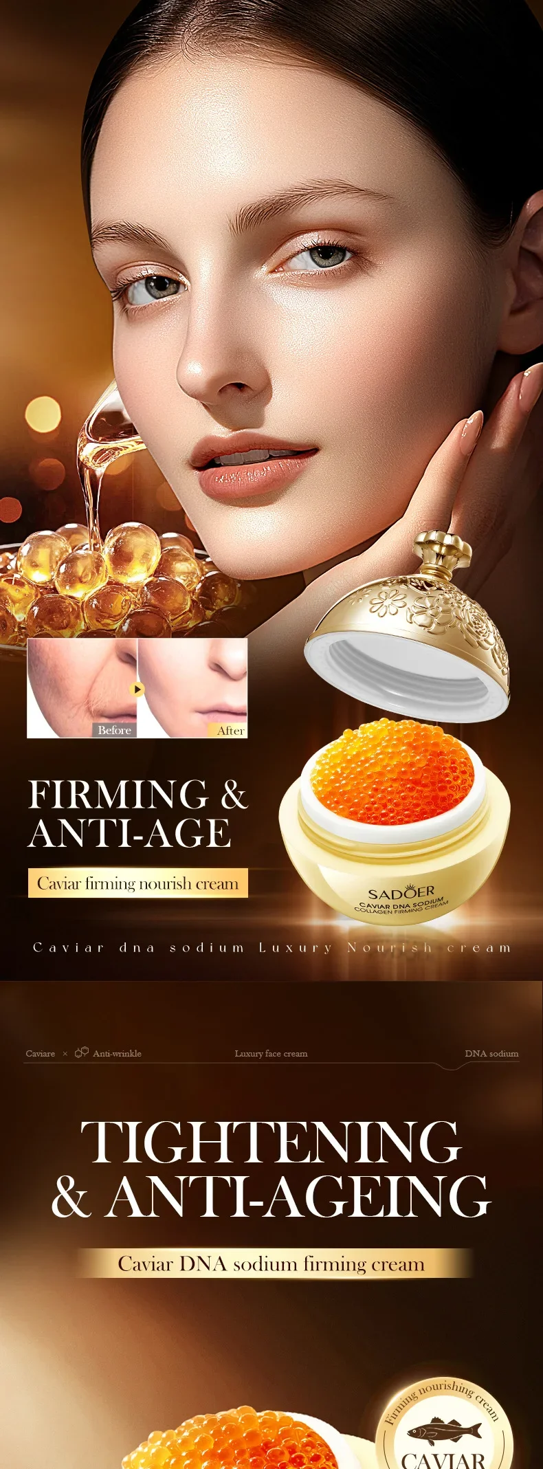 Caviar Anti-Wrinkle Face Cream Collagen Anti-Aging Firming Lift Fade Fine Lines Moisturizing Smooth Brighten Skin Care Products