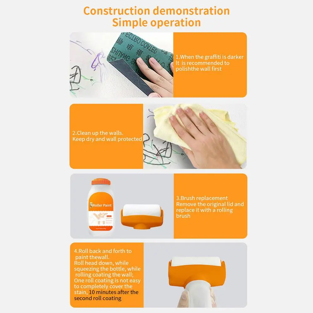 3.Eliminate Unsightly Graffiti: Our Wall Repair Roller Paint features a powerful formula that effortlessly covers graffiti, stains, and cracks on various damaged walls. Restore your walls’ original conditions and bid farewell to unsightly markings.