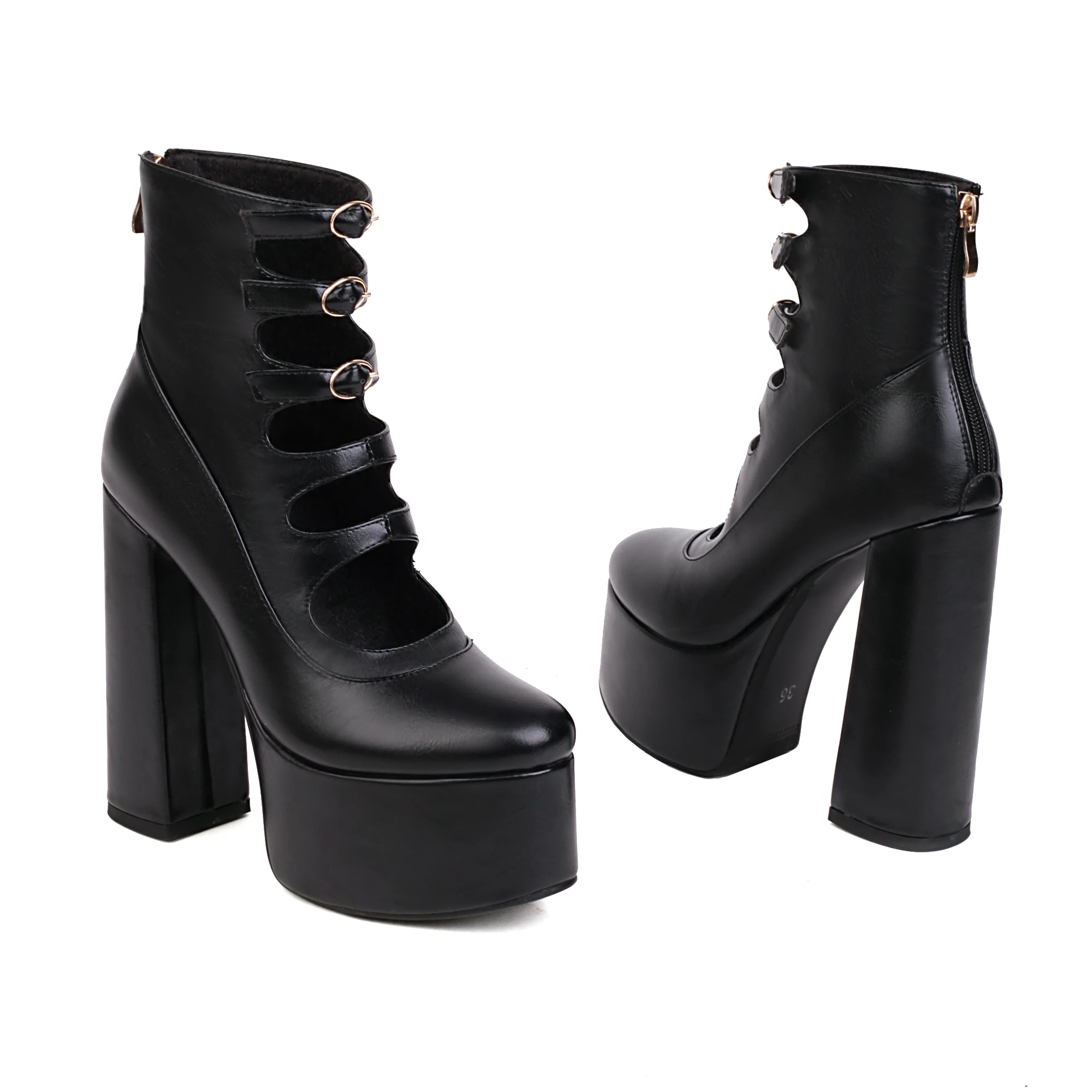 Arden Furtado 2024 Spring Woman’s Platform Belt buckle Short boots Round toe Back zipper Super high heel hollow out Modern boots