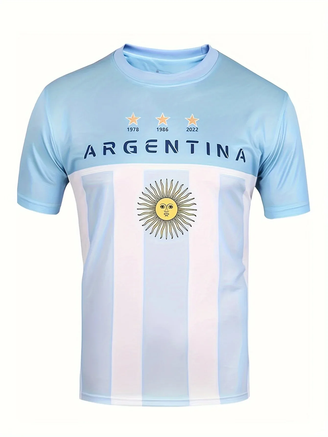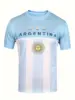 Argentine men’s 3D printed breathable football jersey children’s T-shirt round neck short sleeved football club training uniform