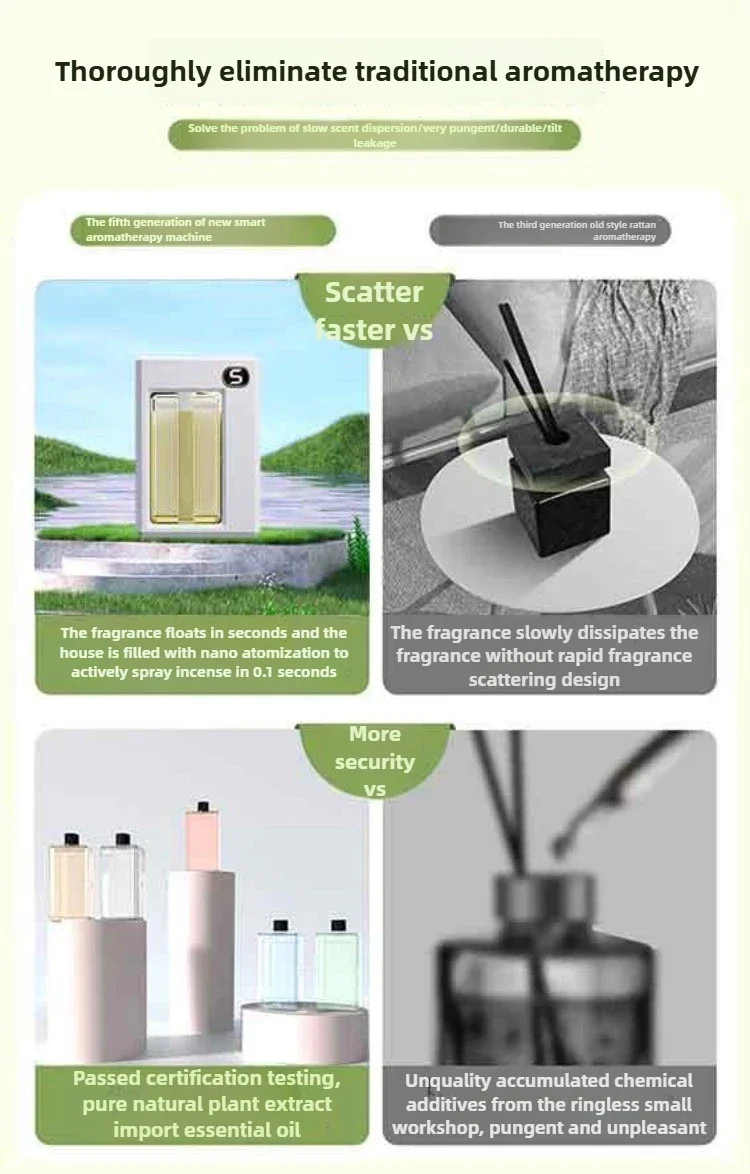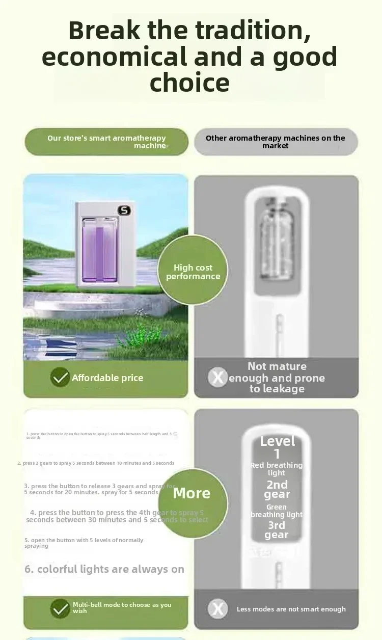 Aromatherapy Machine Air Freshener Six Adjustable Levels Long Battery Life Lasting Spreading Wider for Home Office Odor Removing