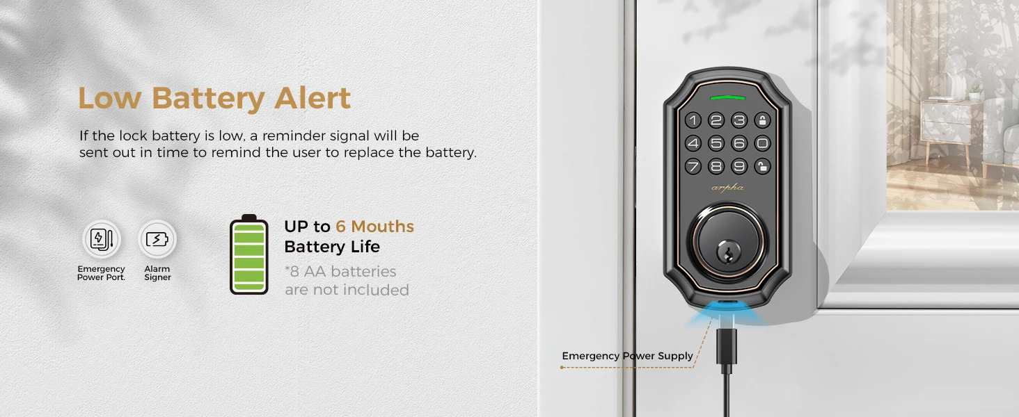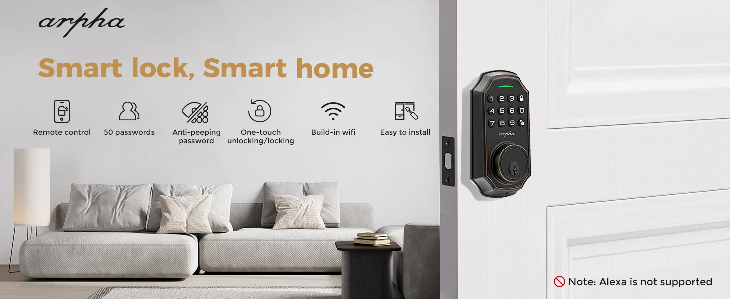 Arpha Smart Door Lock D180W WiFi Electronic Lock w/ 50 Passwords Combination Lock APP Remote Door Locks Control Easy to Install