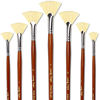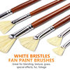 Lonely Finger Artist Fan Paint Brush Set of 7, White Hog Bristle Natural Hair Anti-Shedding Brush Tips, Long Wooden Handle for Comfortable Holding, Great for Acrylic Watercolor Oil Painting