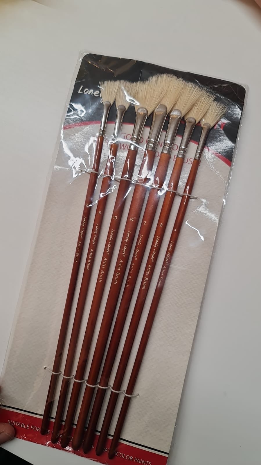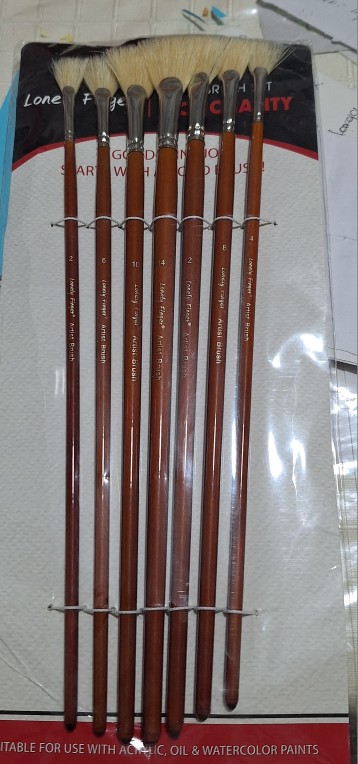 Lonely Finger Artist Fan Paint Brush Set of 7, White Hog Bristle Natural Hair Anti-Shedding Brush Tips, Long Wooden Handle for Comfortable Holding, Great for Acrylic Watercolor Oil Painting
