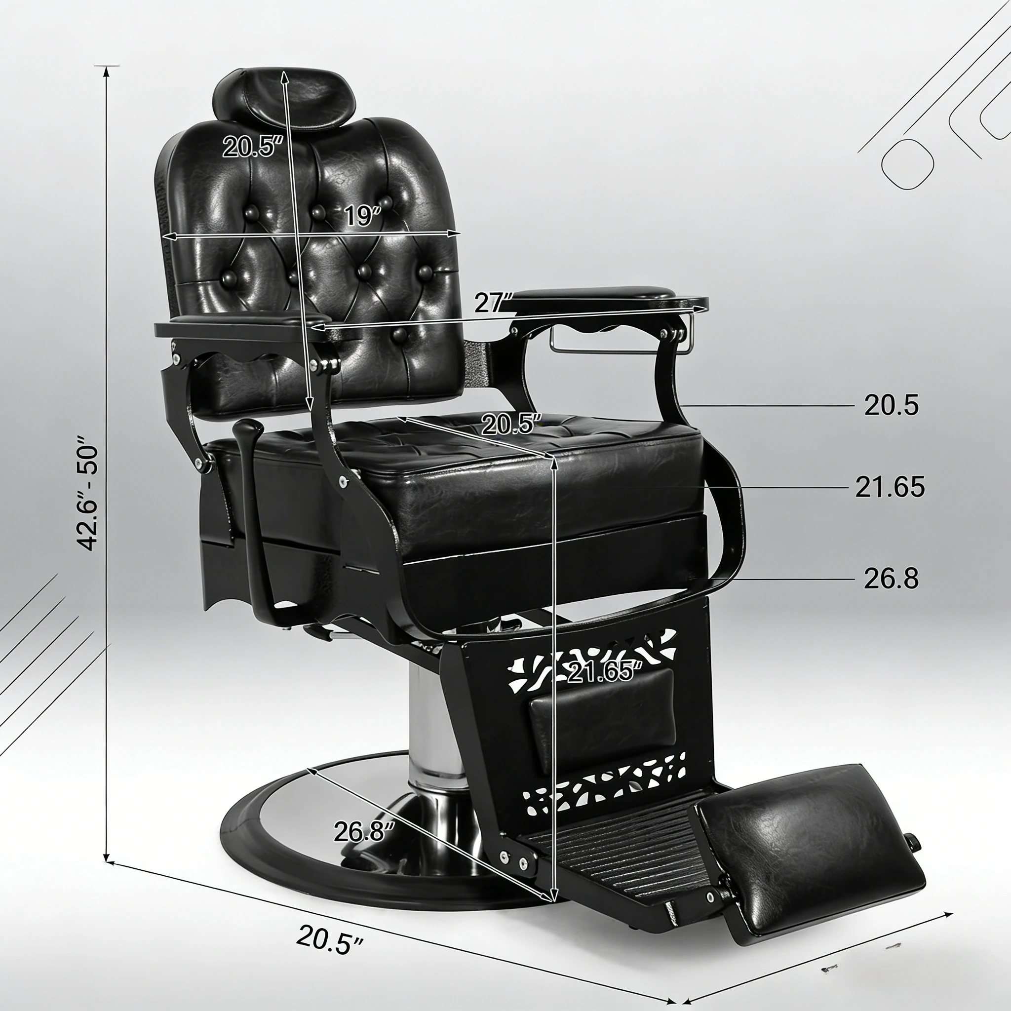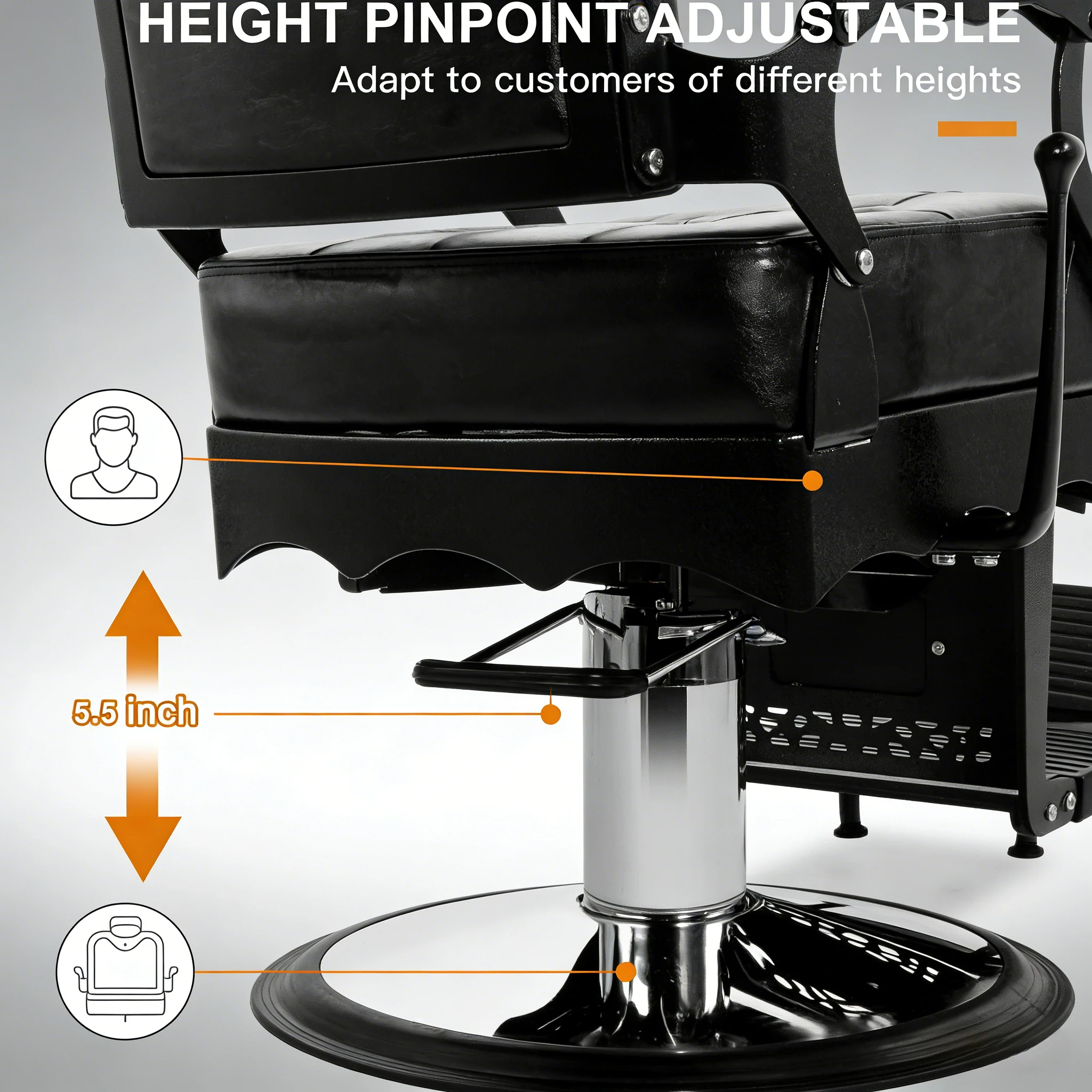 • Hydraulic Height Adjustment: Smooth, effortless height tuning via heavy-duty pump to match stylists’ working positions.