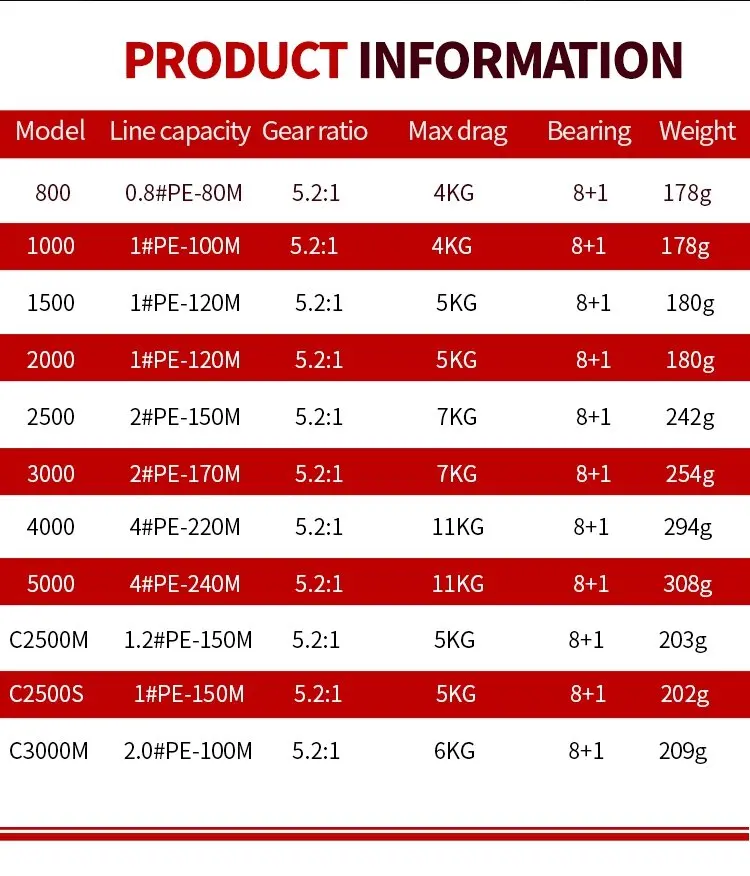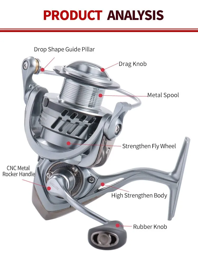 ARTSEA Spinning Reel Trout Fishing Reel 5.2:1 8+1BBS SW800-SW5000 Saltwater Lure Reel Max Drag 9KG Power for Bass Pike
