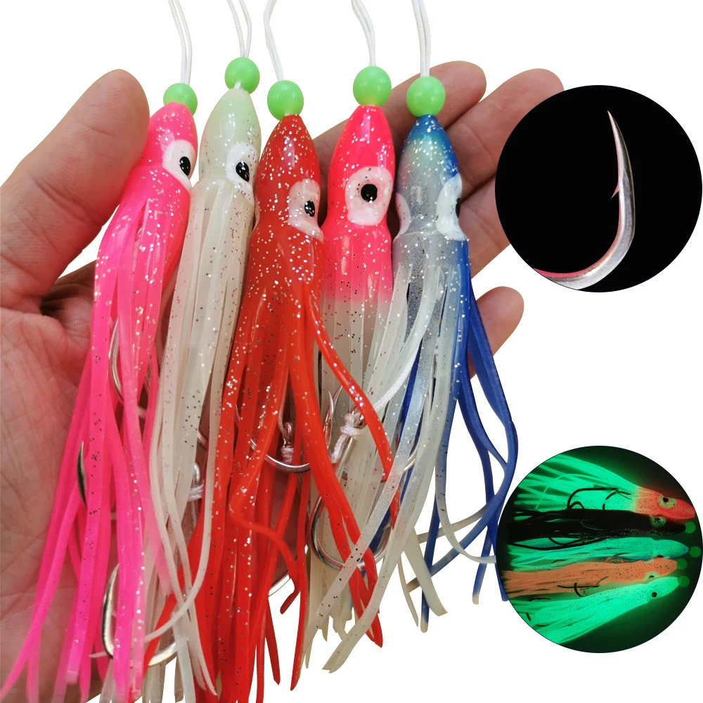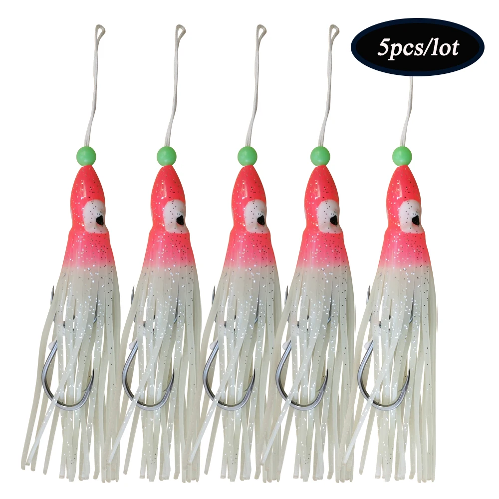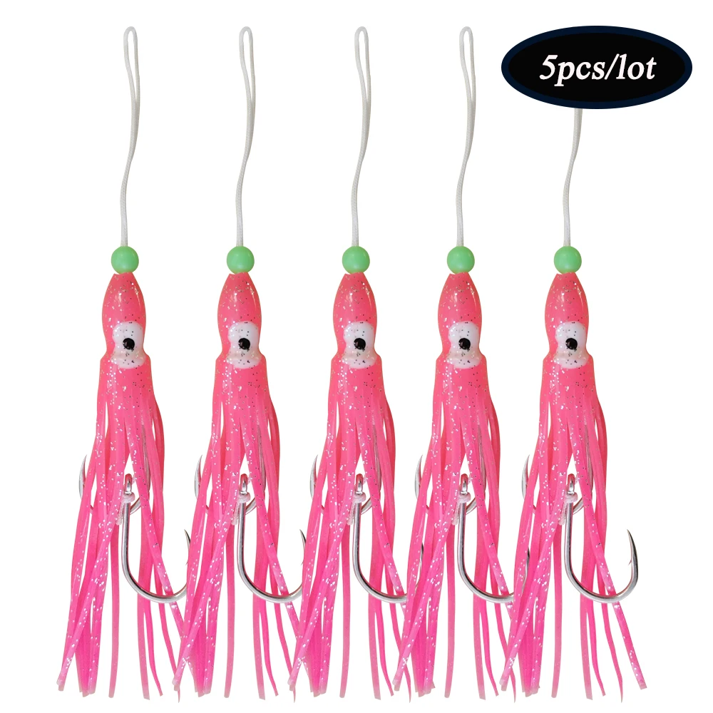 AS 5pcs/bag 12cm Soft Bait Inchiku Assist Hooks With Squid Skirts Large Sized Jig Octopus Squid Snapper Jigs Hook Sea Fishing