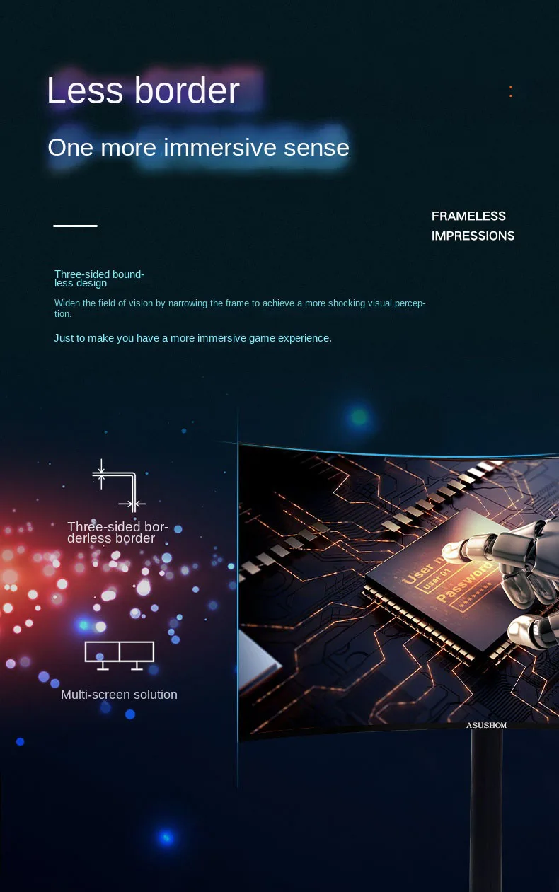 ASUSHOM 27in 2K 240Hz Desktop Monitor 2560*1440 HDR Freesync Gaming Computer Monitor VA Weakly curved straight screen HDMI/DP