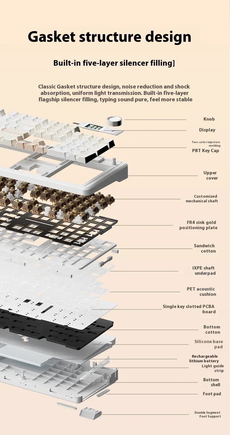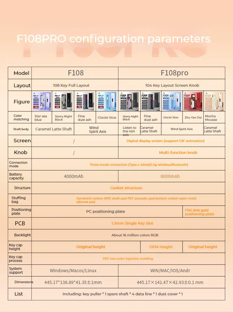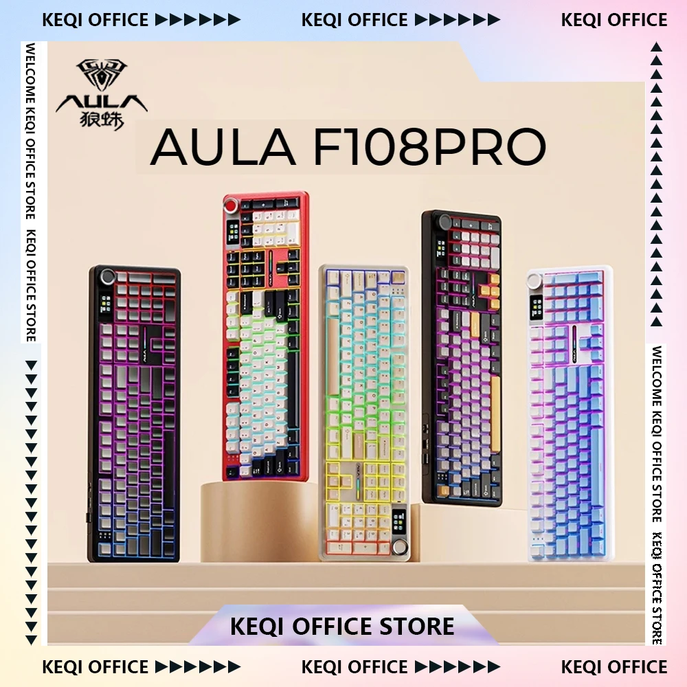 AULA F108 Pro Wireless Mechanical Keyboard 3Mode Hot Swap RGB Gasket FR4 Gold-Plated Positioning Board Custom Gaming Keyboard