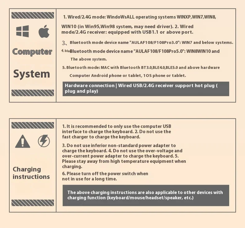 Connection mode: the third mock examination connection (Type-c wired/2.4g wireless/Bluetooth)