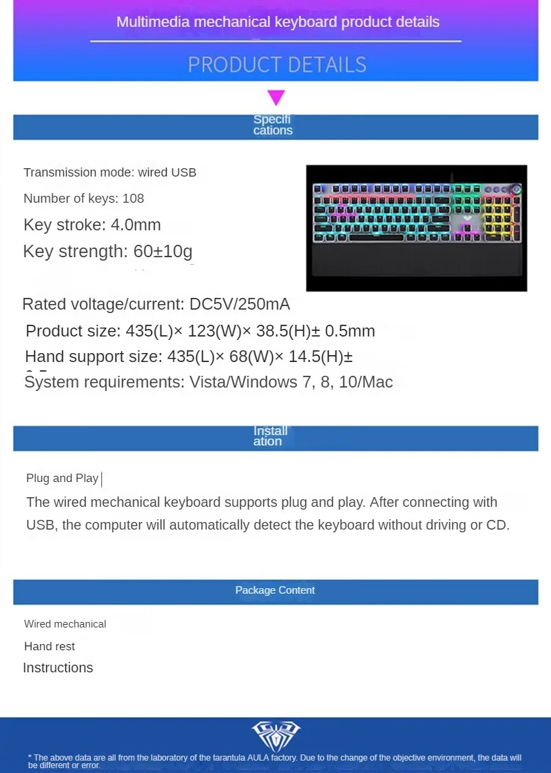 Wired gaming mechanical keyboard