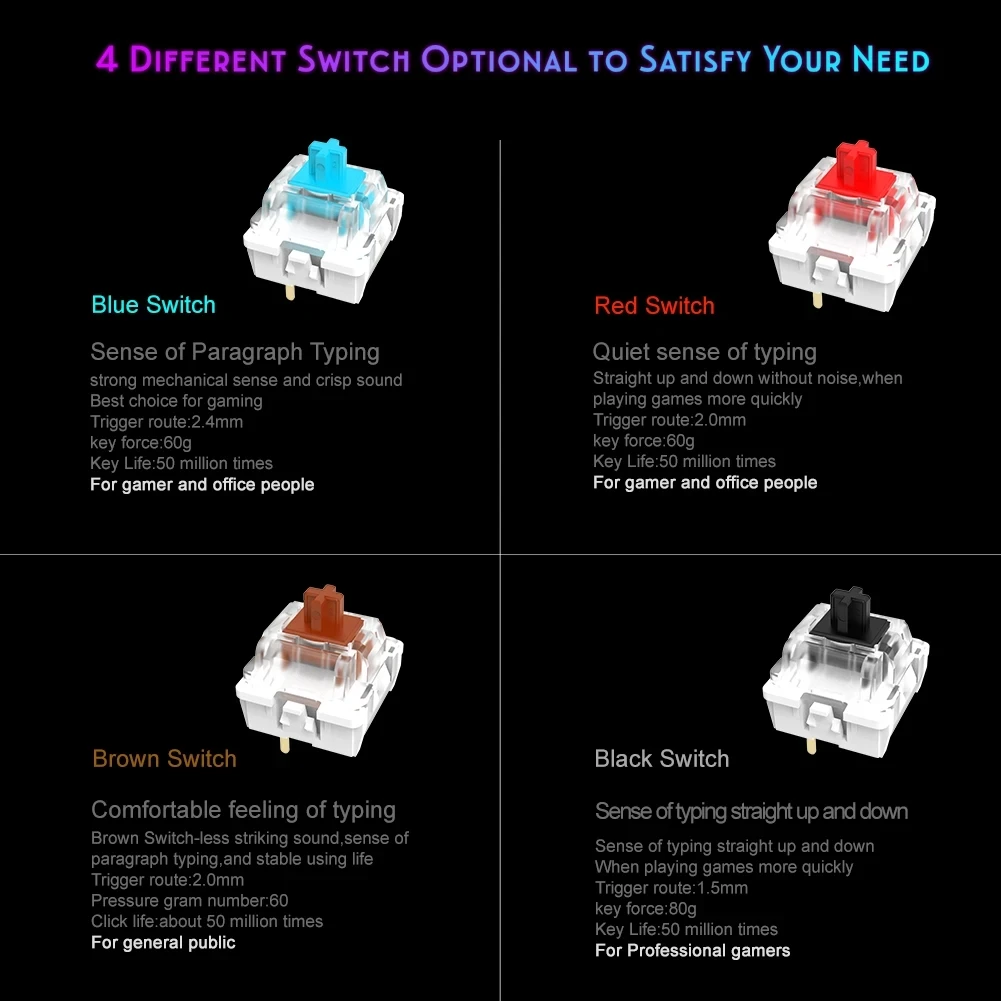 • Anti-ghosting Feature :The anti-ghosting feature of the keyboard prevents accidental keys from being pressed, providing greater control over your gameplay.