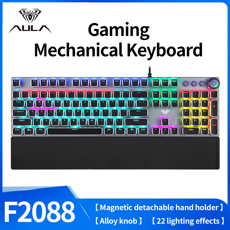 AULA F2088 Mechanical Gaming Keyboard Full Key Programmable Macro Wire E-sports Keyboards With Mixed Light ABS Plastic Keycaps