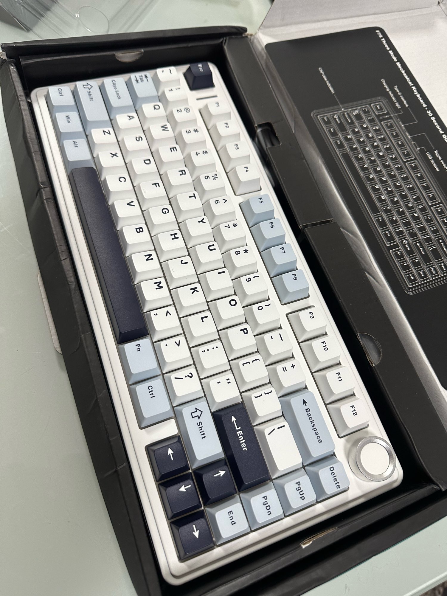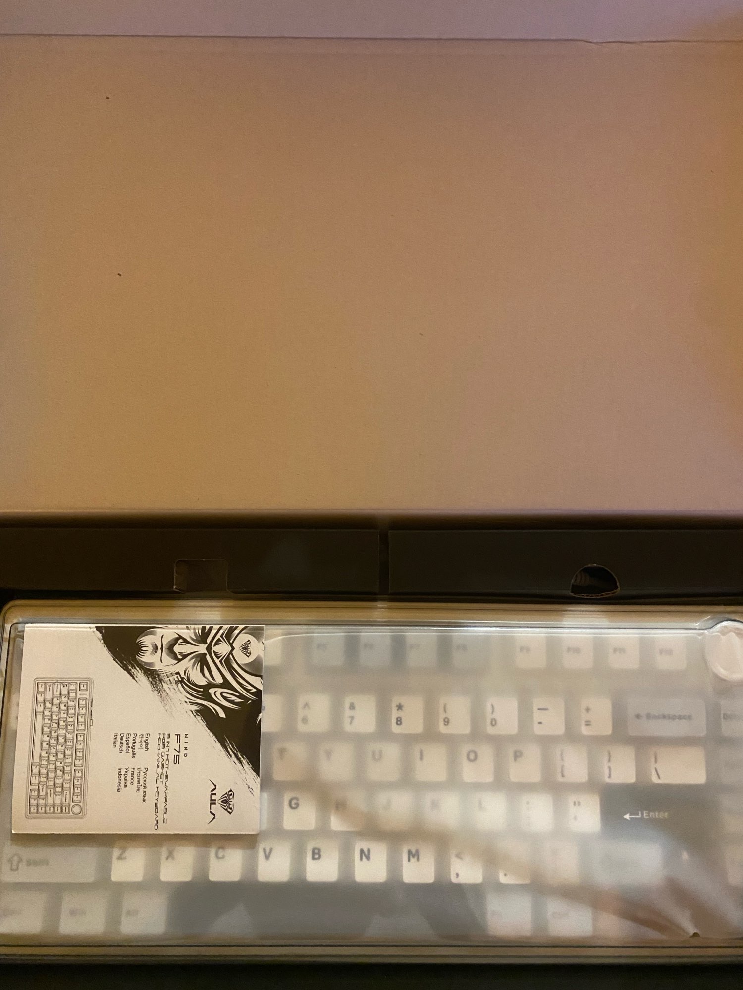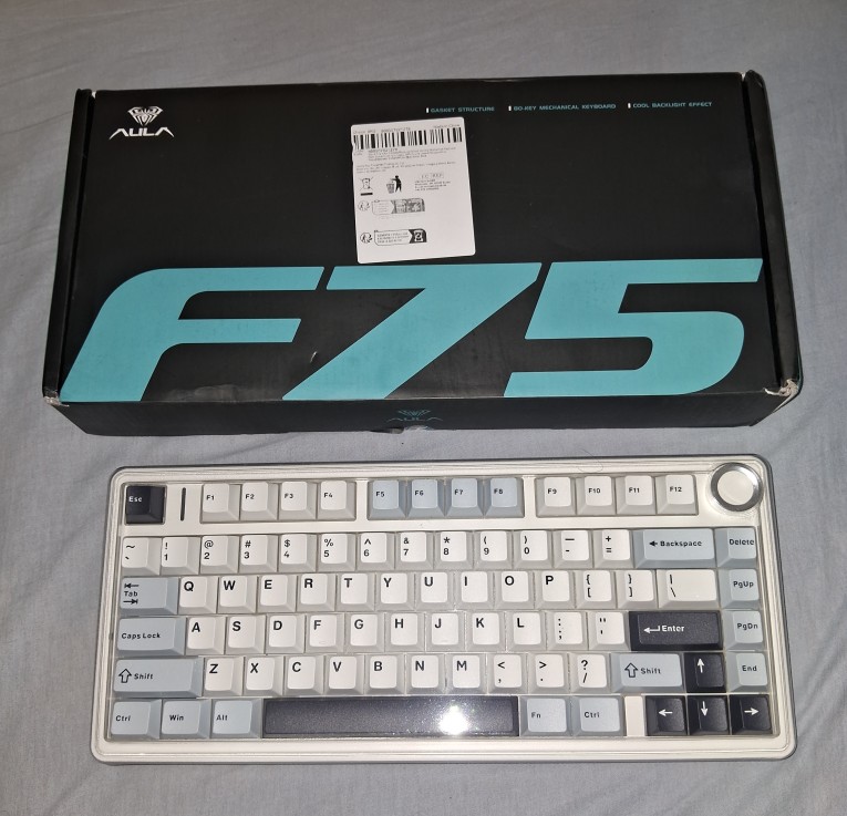 The box arrived well crumpled, but there was no damage to the keyboard. The F75 class is sensational, amazing keyboard for the price it is charged, coming out of an attack shark K86, the difference is stark.