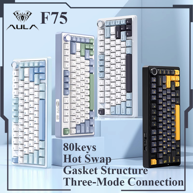 Aula F75 Mechanical Keyboard 80 Key Gasket Structure Full-Key Hot Swap Rgb Three-Mode Wireless Bluetooth Gaming Keyboard Custom
