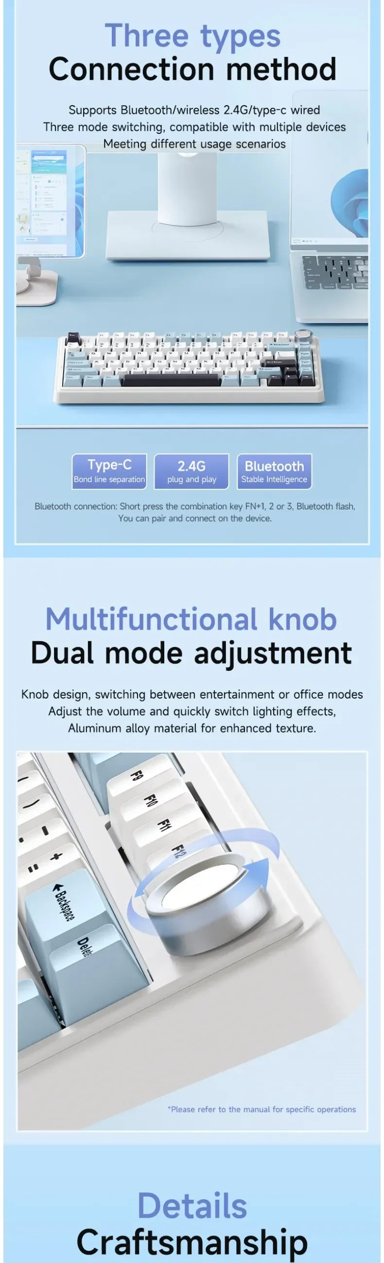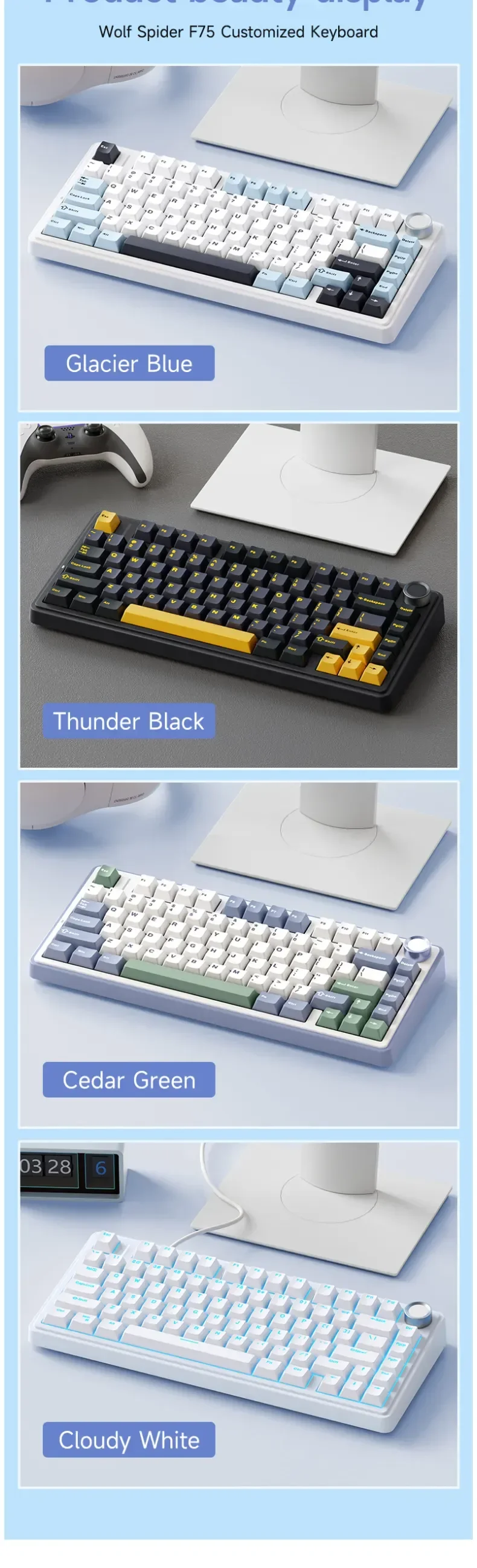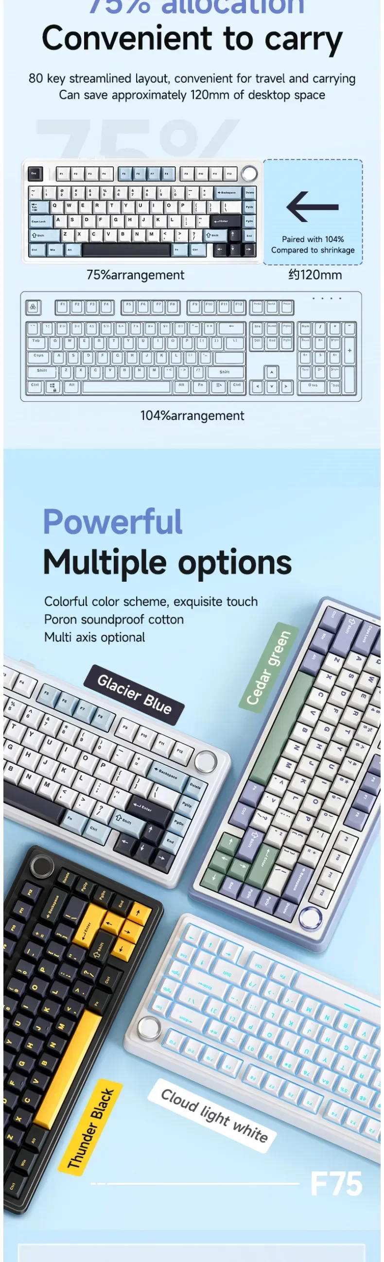 Aula F75 Mechanical Keyboard 80 Key Gasket Structure Full-Key Hot Swap Rgb Three-Mode Wireless Bluetooth Gaming Keyboard Custom