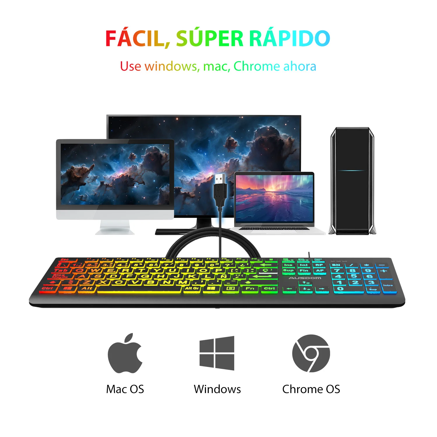 Spanish Letter Layout RGB Keyboard Office Keyboard