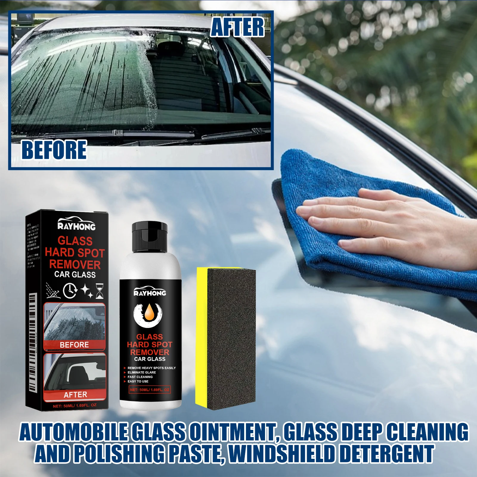 Features: 1.Versatile For Multiple Scenarios: Designed for household and automotive use, this paste is suitable for car windshield, rear and side windows, mirrors, as well as bathroom glass and home glass doors. automobile glass polishing paste formula ensures value no matter the cleaning task. 2.Thorough Deep Cleaning Power: Penetrates surfaces to break down oil films, water scale, stains, and fingerprints, efficiently restoring clarity to glass. scratch remover kit tackles tough issues like water spots and calcium buildup on car and bathroom glass. 3.Gentle Polishing & Scratch Repair: Featuring micro-abrasive particles, it effortlessly softens fine scratches and scuffs, making the glass surface smoother. glass polishing compound leaves your windows gleaming and revitalized after each application. 4.Safe & Non-Corrosive Formula: Gentle ingredients in this cleaner protect both your hands and the glass. deep cleaner paste offers peace of mind for families, making it a healthy choice even with kids or elderly at home. 5.Easy To Apply & Quick Results: With its fine paste texture, simply use a towel or sponge for straightforward application and buffing. car windshield oil film remover delivers immediate cleaning results while saving your time and energy. Specification: Note: