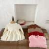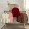 Autumn Infant Baby Girl Dress Cotton Solid Long Sleeve Newborn Girls Princess Dress Flare Cuff Knitted Ruched Toddler Girl Dress