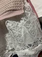 The dress is beautiful, it's perfect! Quality of it is impeccable! The lining under the lace is half transparent, I suggest wearing a pair of underwear underneath. The lace is beautiful and the vest too! I loved it! Only the little flower is not very beautiful