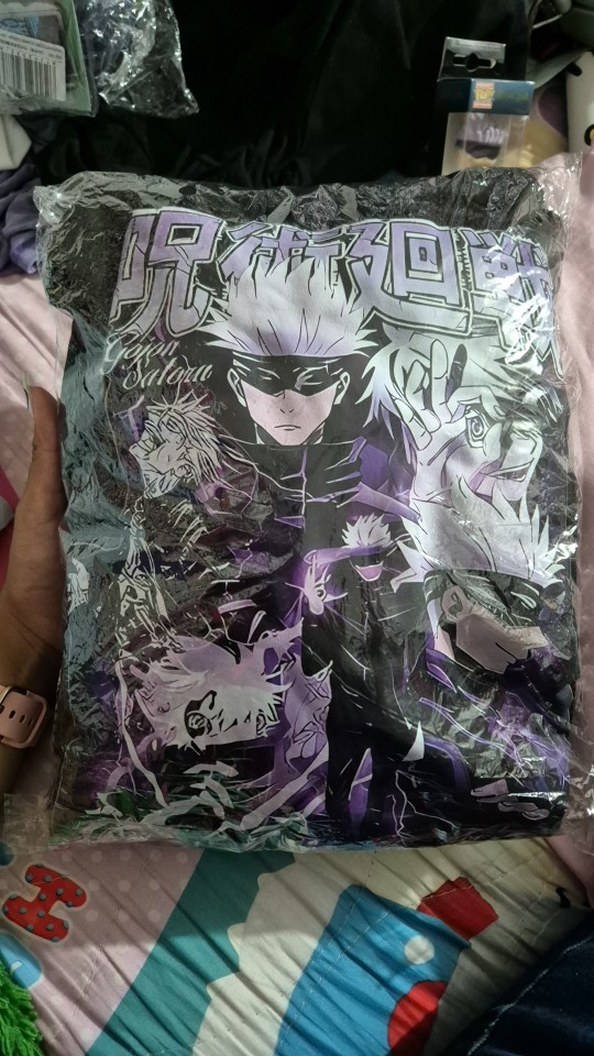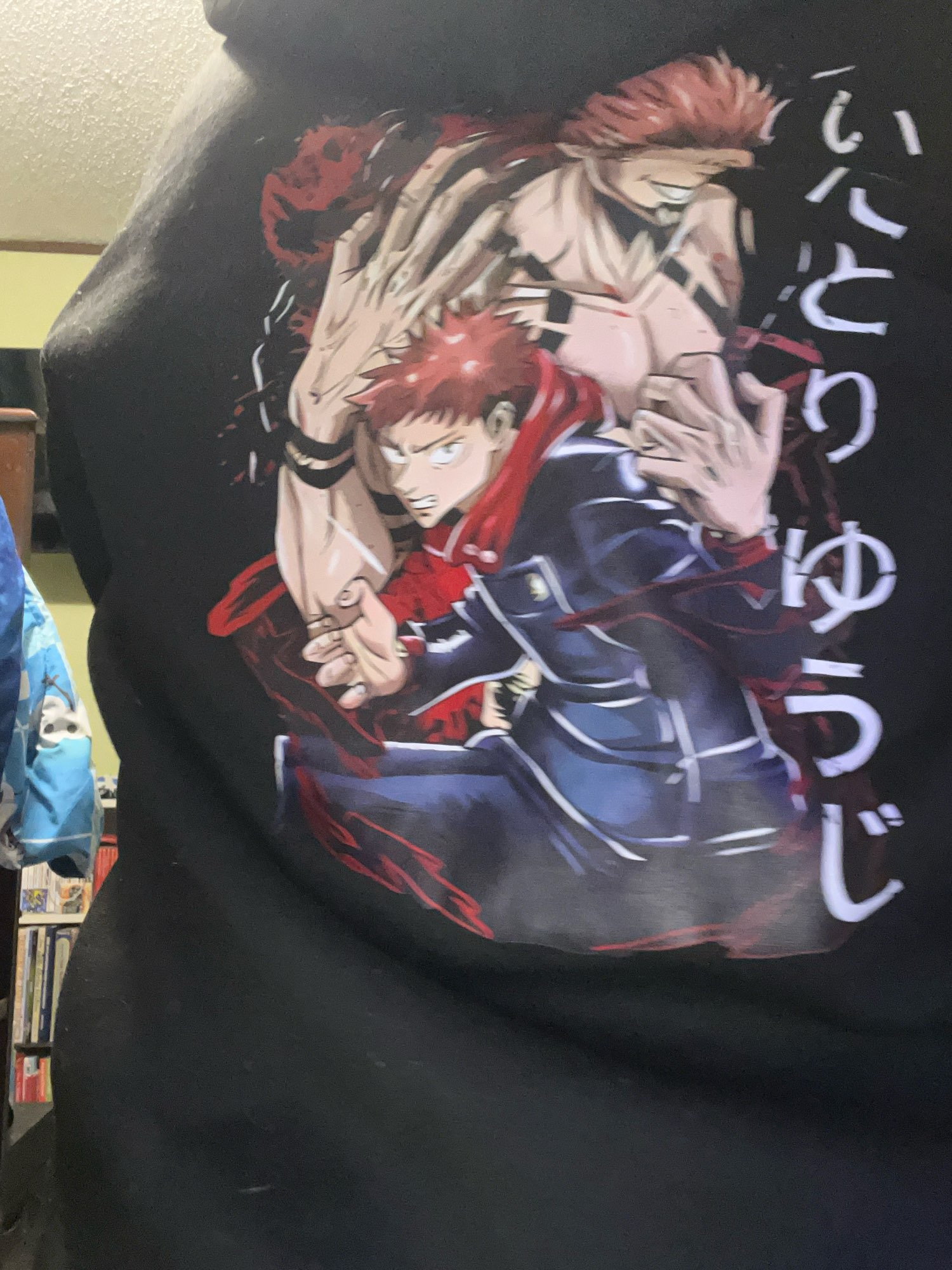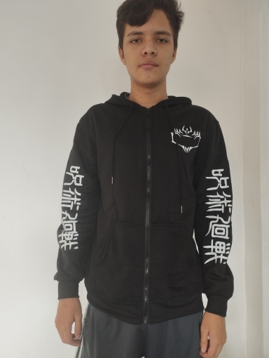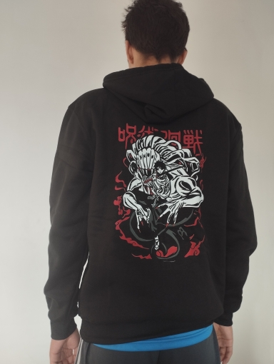 Perfect size! The pattern is just amazing even if you have to be careful washing it since it's printed. As in the photos I am too happy and I recommend to tous the fans of Jjk.