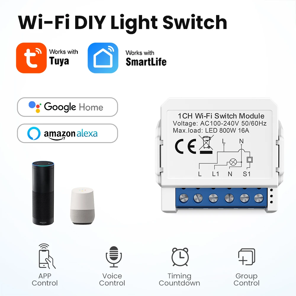 AVATTO Tuya WiFi Smart Light Switch Module,1/2/3/4 Gang DIY Breaker Neutral Wire Control Works With Alexa, Google Home