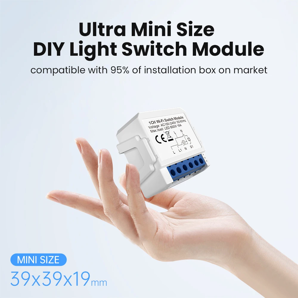 [ Ultra Mini Size DIY Light Switch Module ] -39X39X19mm ultra mini size body,compatible with 95% of installation box on market.