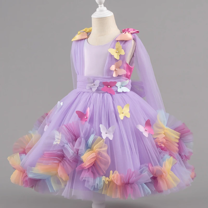 Baby Dress 0-5 Years Birthday Party Wedding Dresses for Toddler Sleeveless butterfly Mesh Fluffy Cute Girl Princess Dress