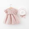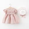 Baby dress summer bow floral print girl princess dress+hat 0-2 year old flower sleeveless girl suspender dress