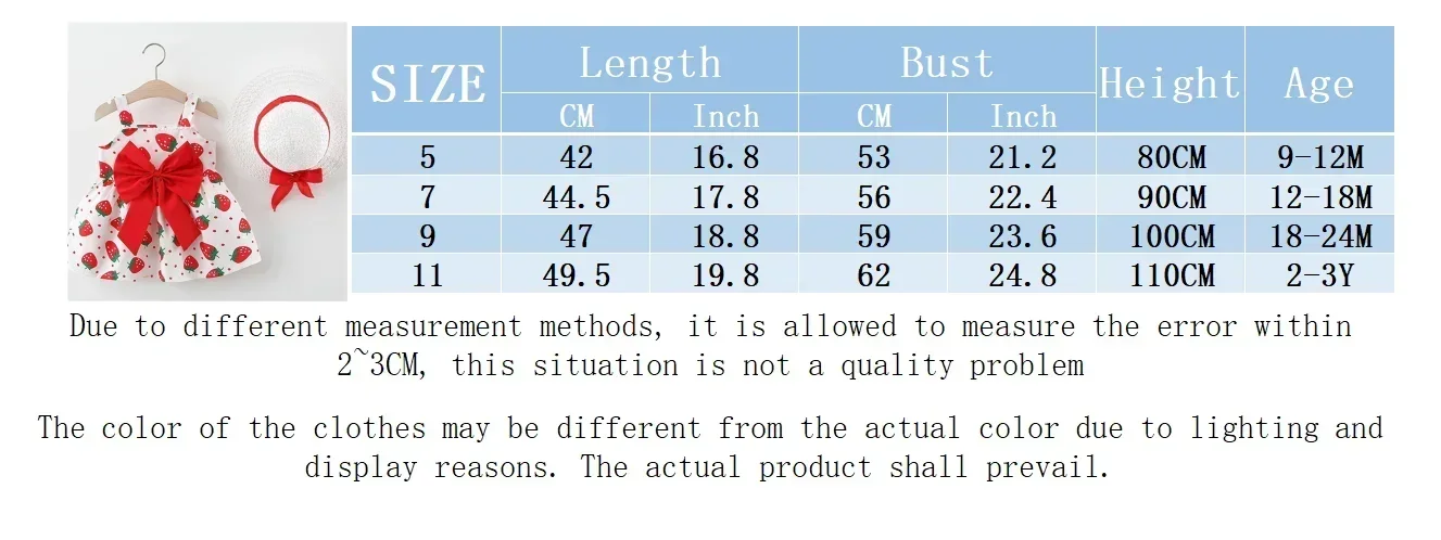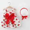 Baby Girl Dress Summer Sweet Strawberry Printed Dress Bow Baby Children Baby Princess Dress (0-3 Years Old)