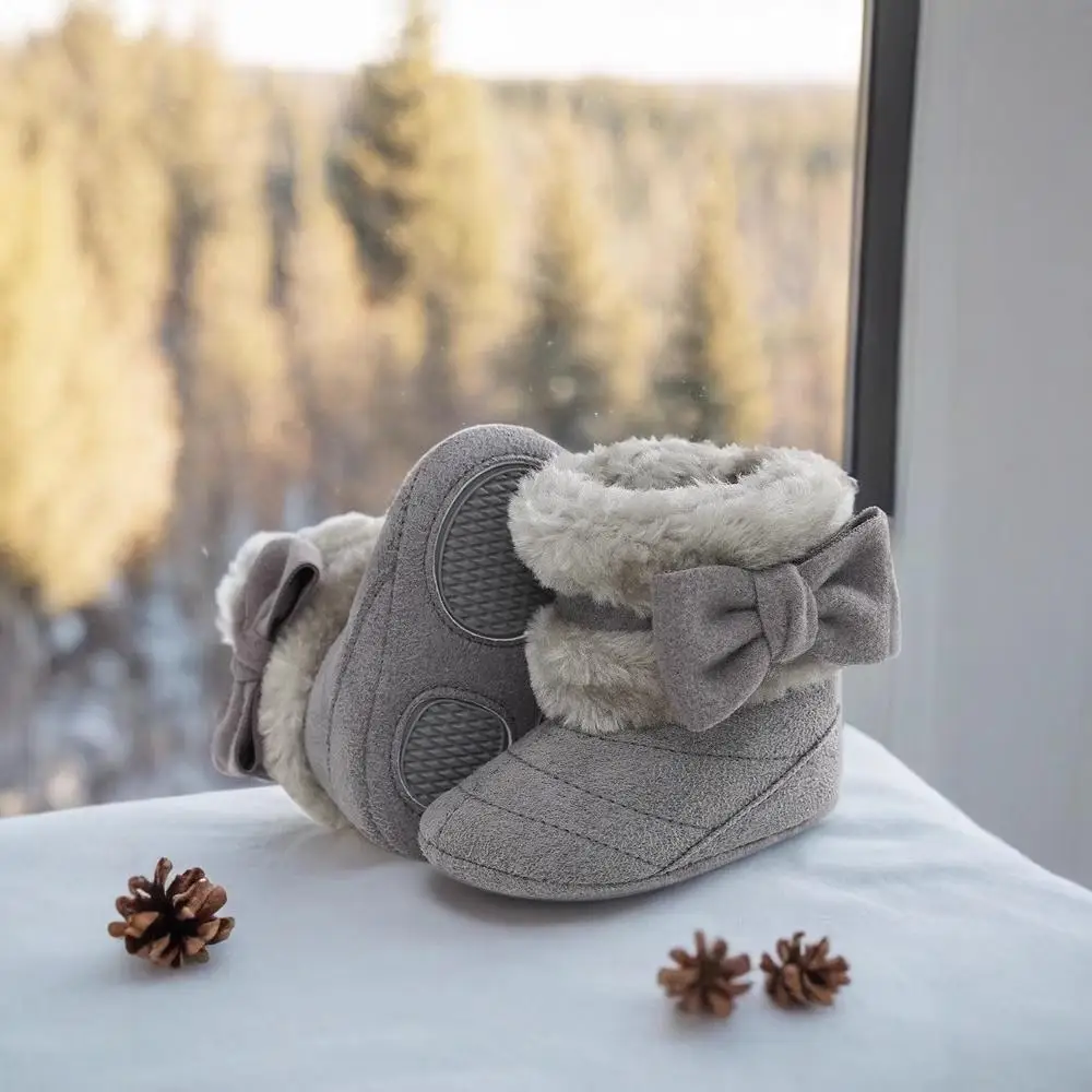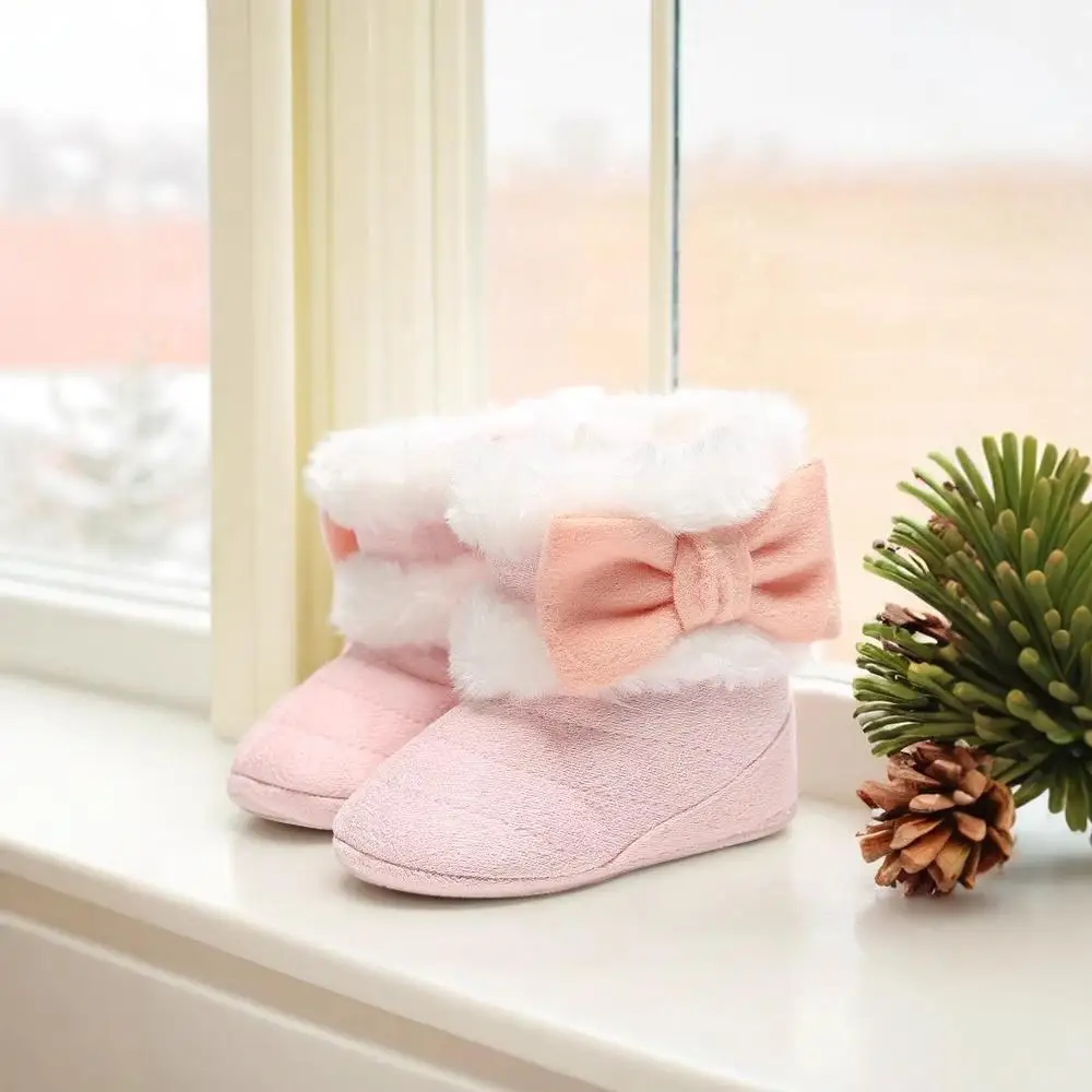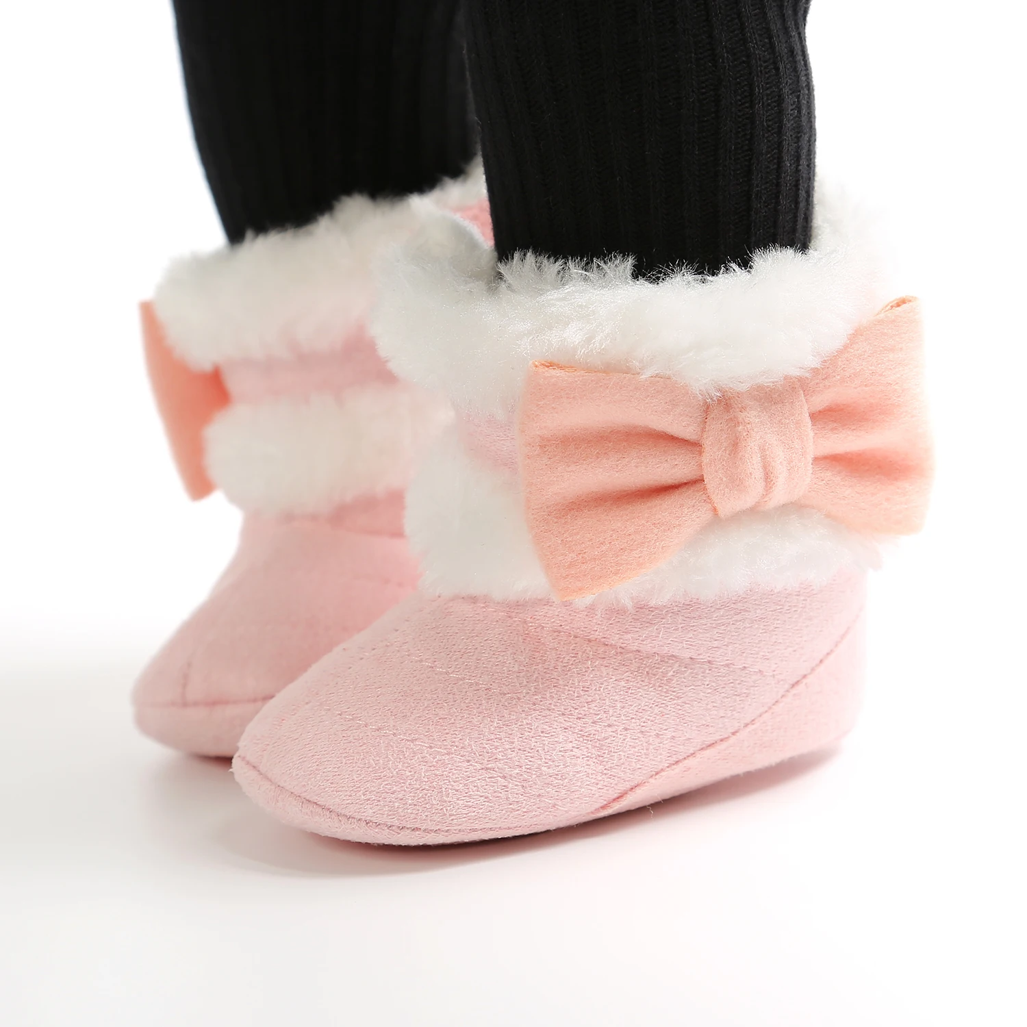 Baby Girl Plush Winter Snow Bowknot Boots Baby Boy Girl Boots Newborn Shoes Winter Snow Bowknot Anti-Slip Soft Sole Warm Infant