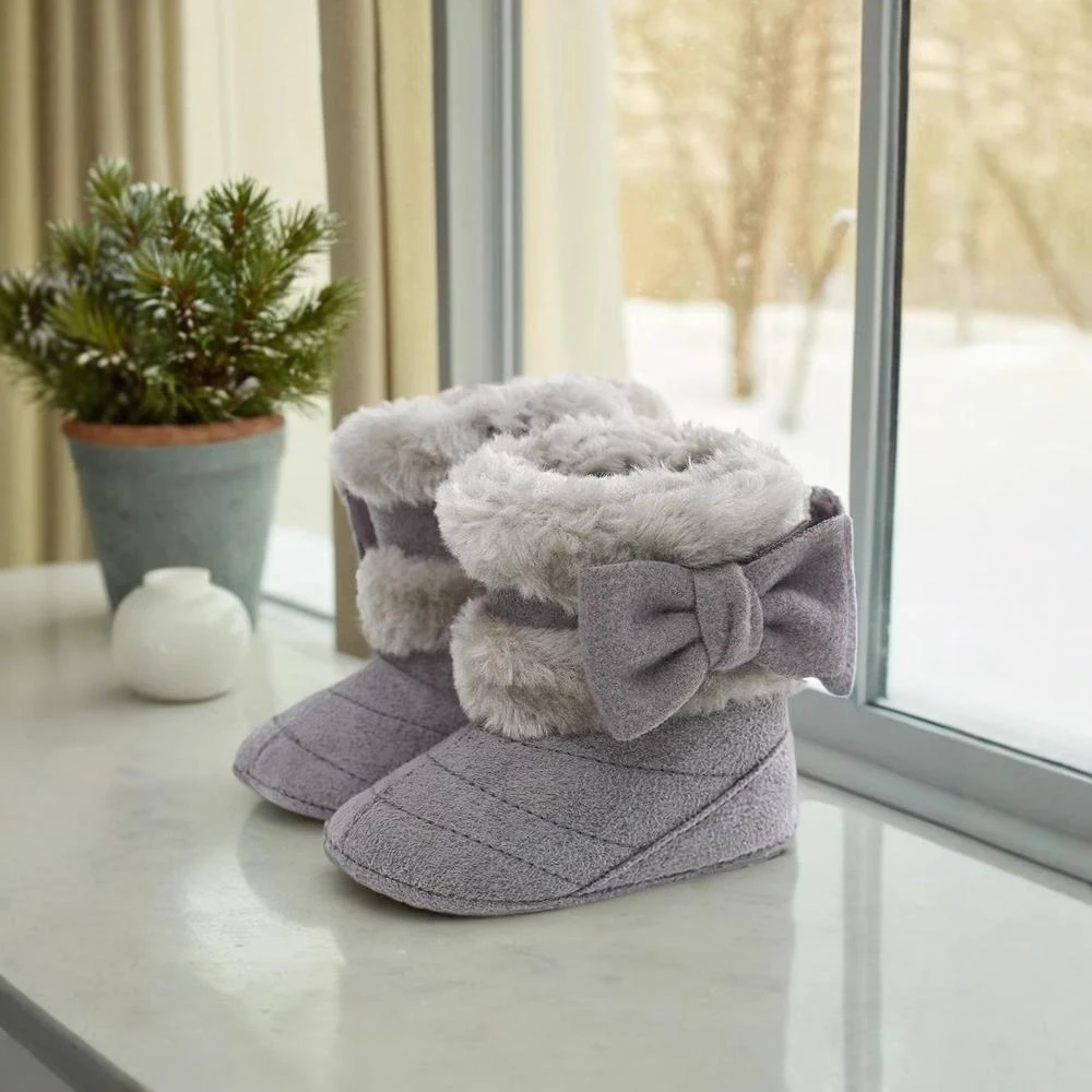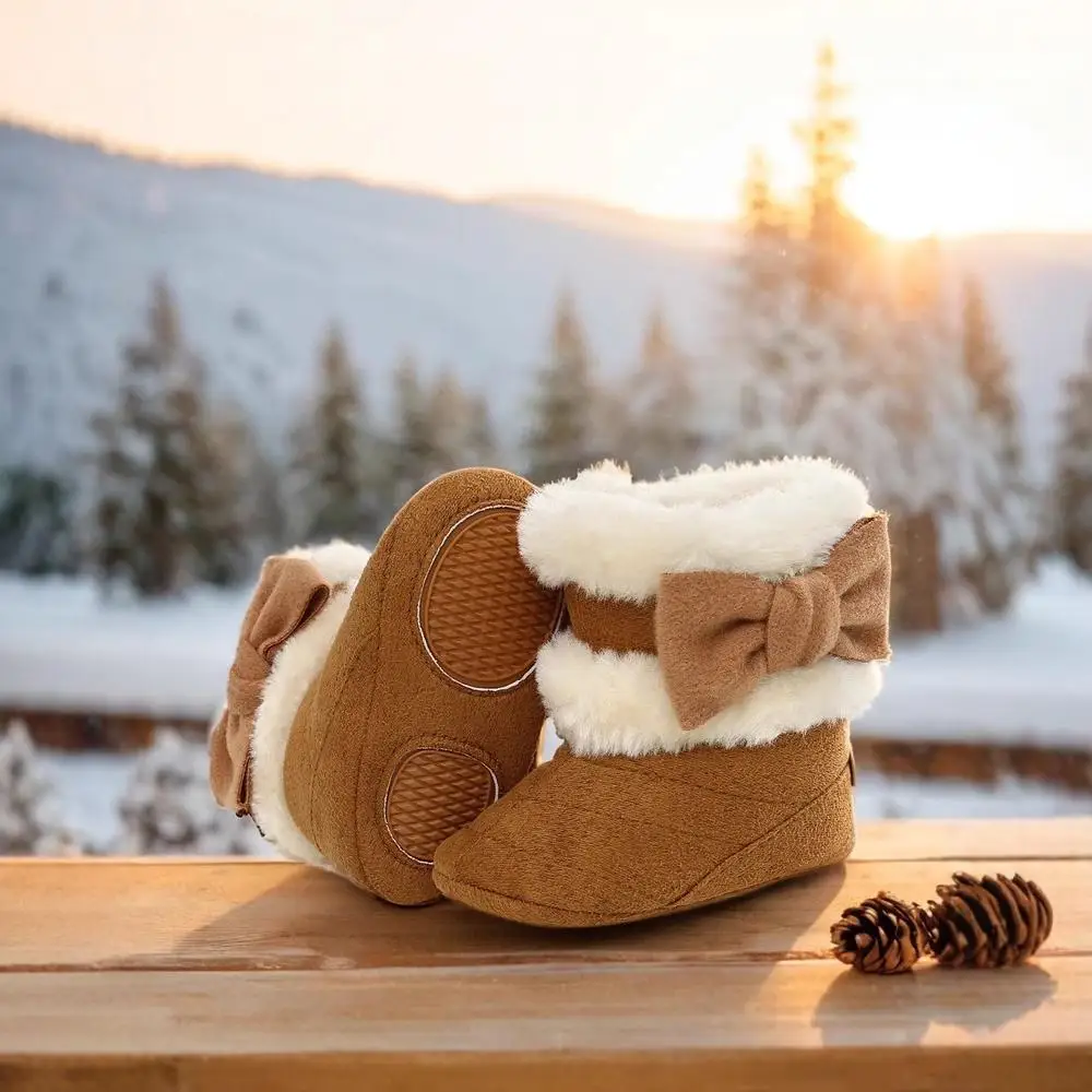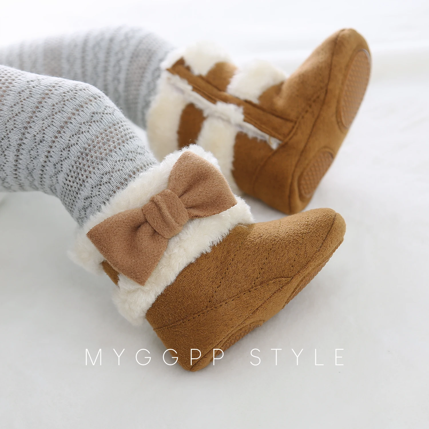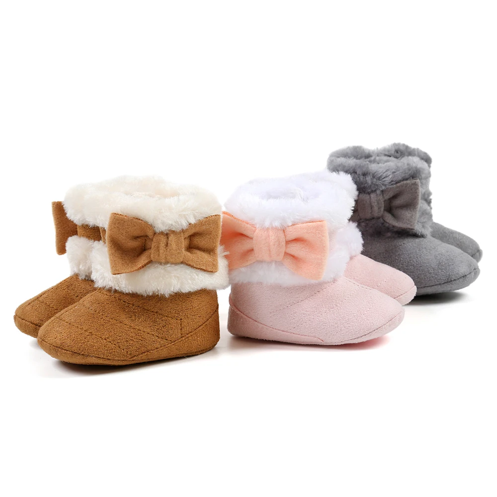 Baby Girl Plush Winter Snow Bowknot Boots Baby Boy Girl Boots Newborn Shoes Winter Snow Bowknot Anti-Slip Soft Sole Warm Infant