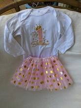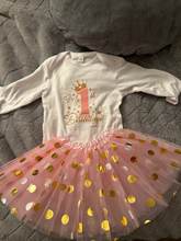 This outfit is absolutely adorable and exactly as pictured! The quality is great, with soft fabric and beautiful details, perfect for a first birthday. The seller shipped it very quickly, and I’m really happy with the purchase. Highly recommend