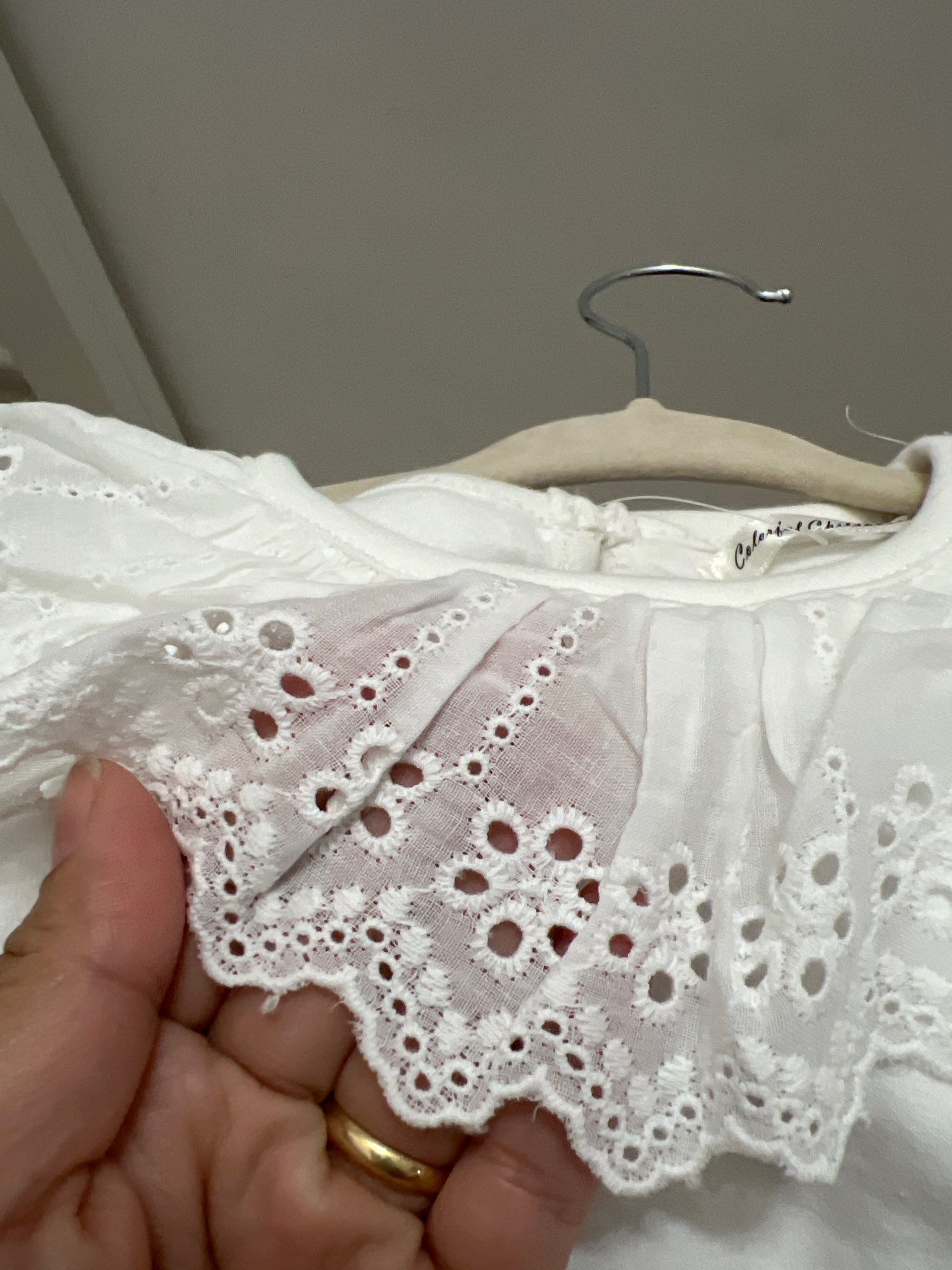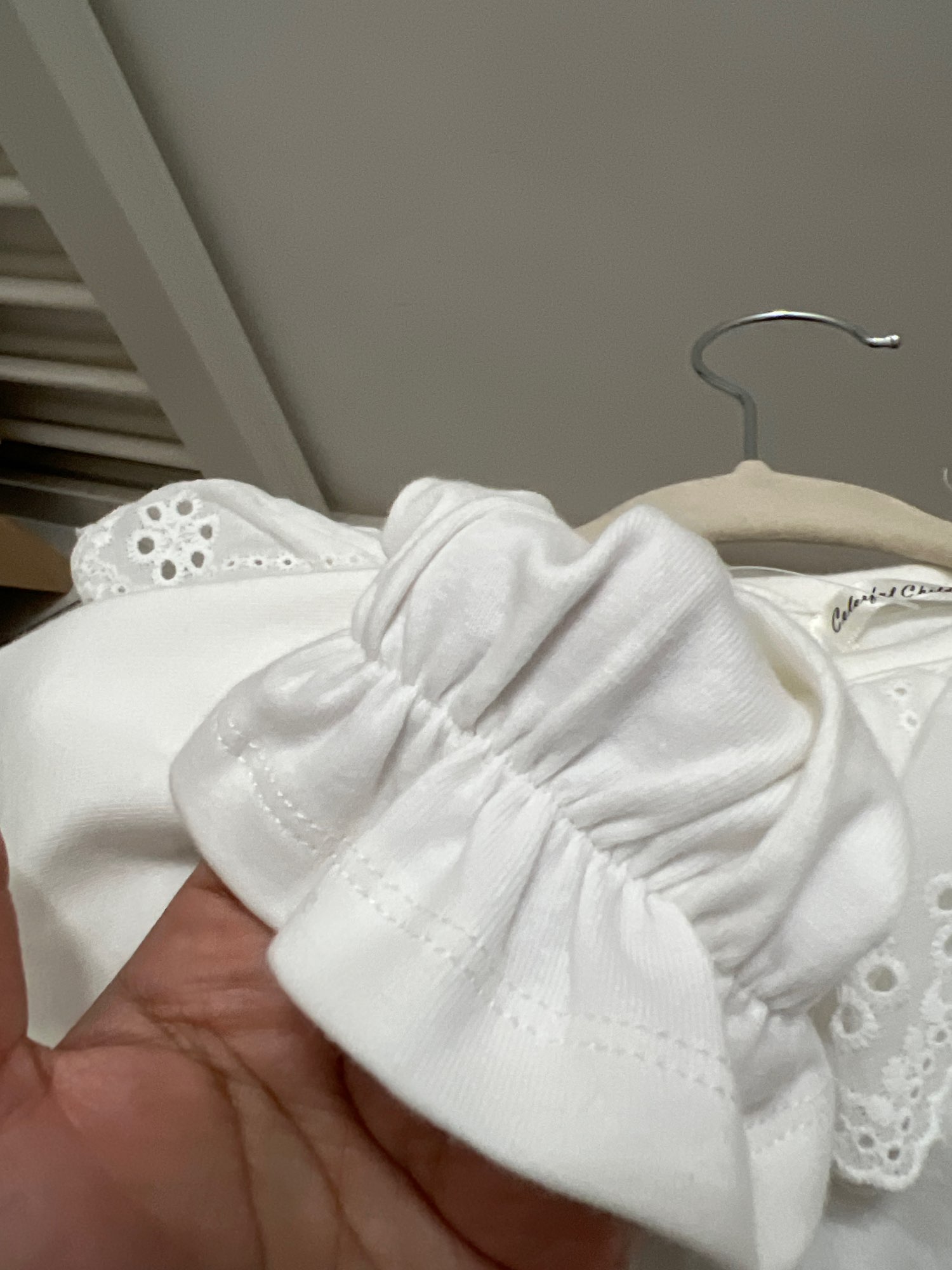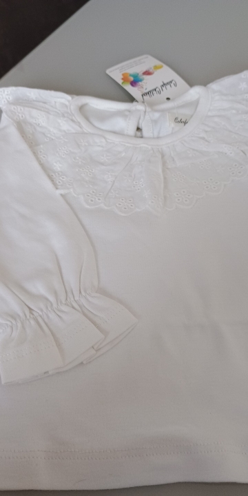 People, this blouse is perfect. The wonderful fabric, very comfortable. It has the soft touch, it is a cold mesh, and it looks beautiful on the body. It was a little baggy, but I preferred it so as not to lose so fast, and even big one is already to use. My baby will make 5 months, it is 7kg and 62cm .. I thought Super was worth it and I will buy it now of another color.
