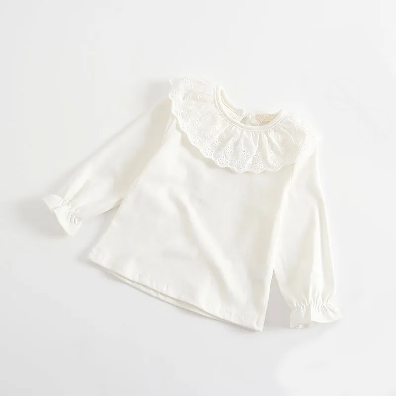 Baby Girls White Blouse Spring autumn Lace Girls Tops Shirt Long-Sleeve toddler kids Clothing 0-24m
