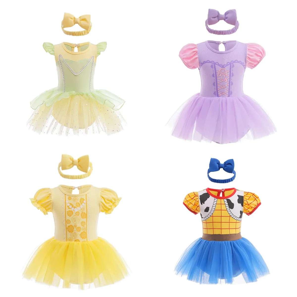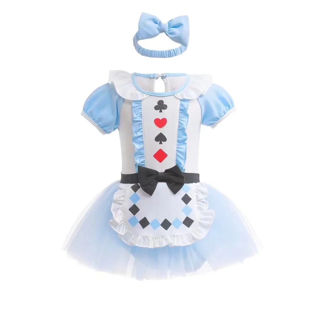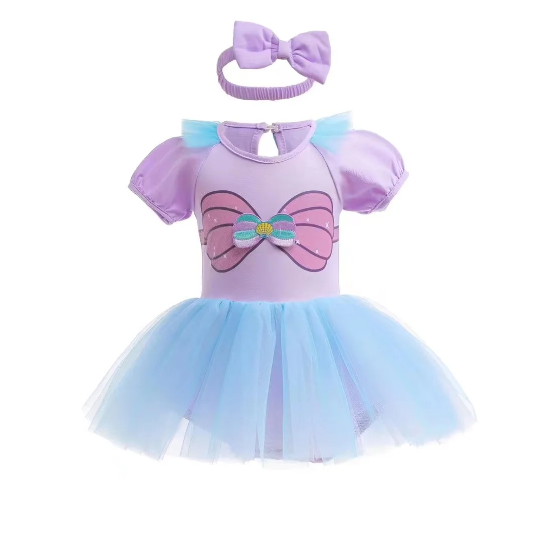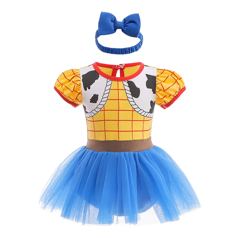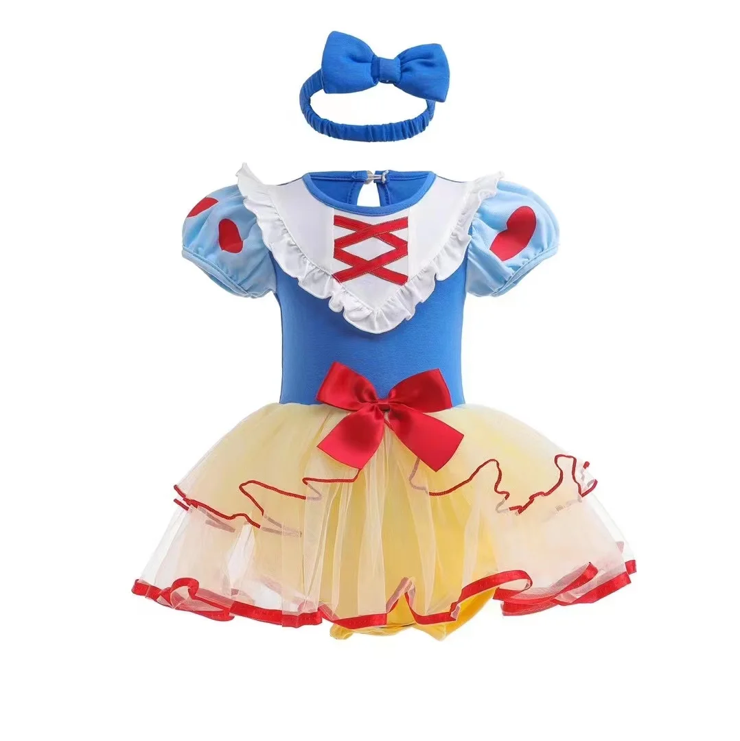 Baby Romper Dress With Headbands Cute Colorful Design Infant Baby Jumpsuit Dress Little Girl Princess Cos Dress Kids Clothes