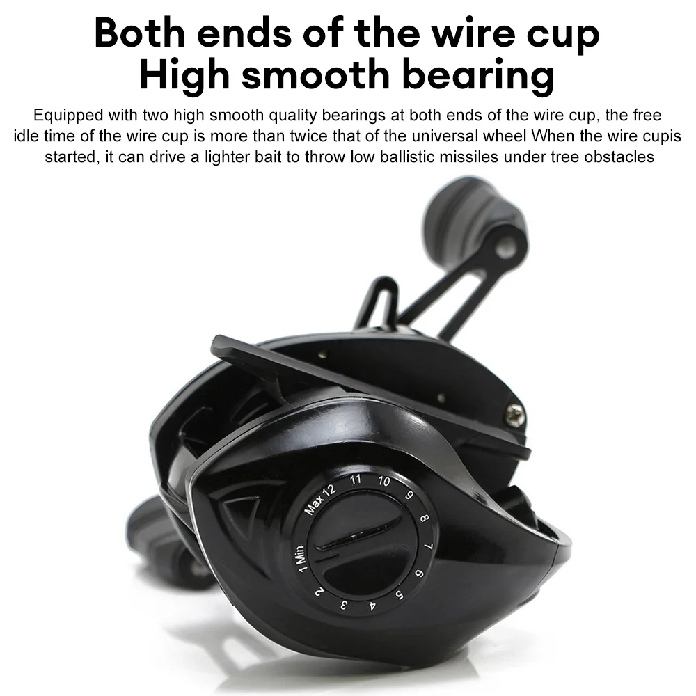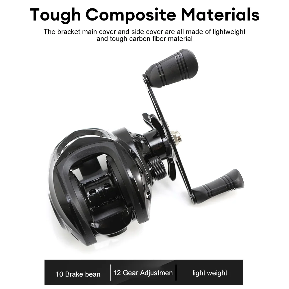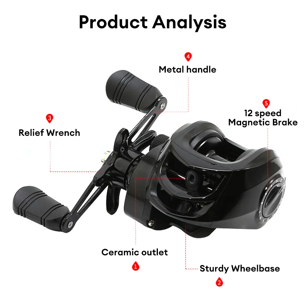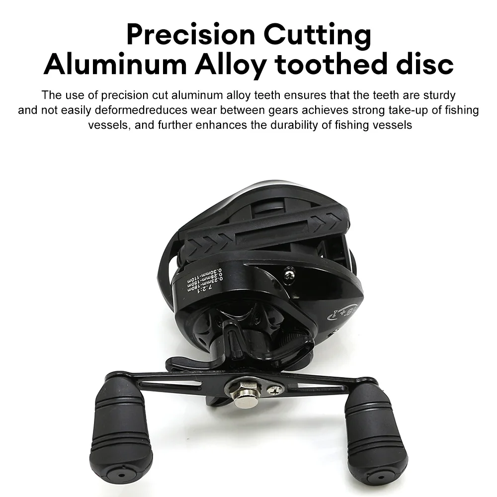 1. Reinforcement: Fine metal knobs increase stable line speed and fine anti-slip design. Baitcasting winders are reinforced to keep light and reduce fatigue. Precision cut manganese brass main gears and pinion gears ensure longer service life, higher speed and lower noise. With up to 10 kg of stepless adjustable resistance, you will have complete control of your environment.