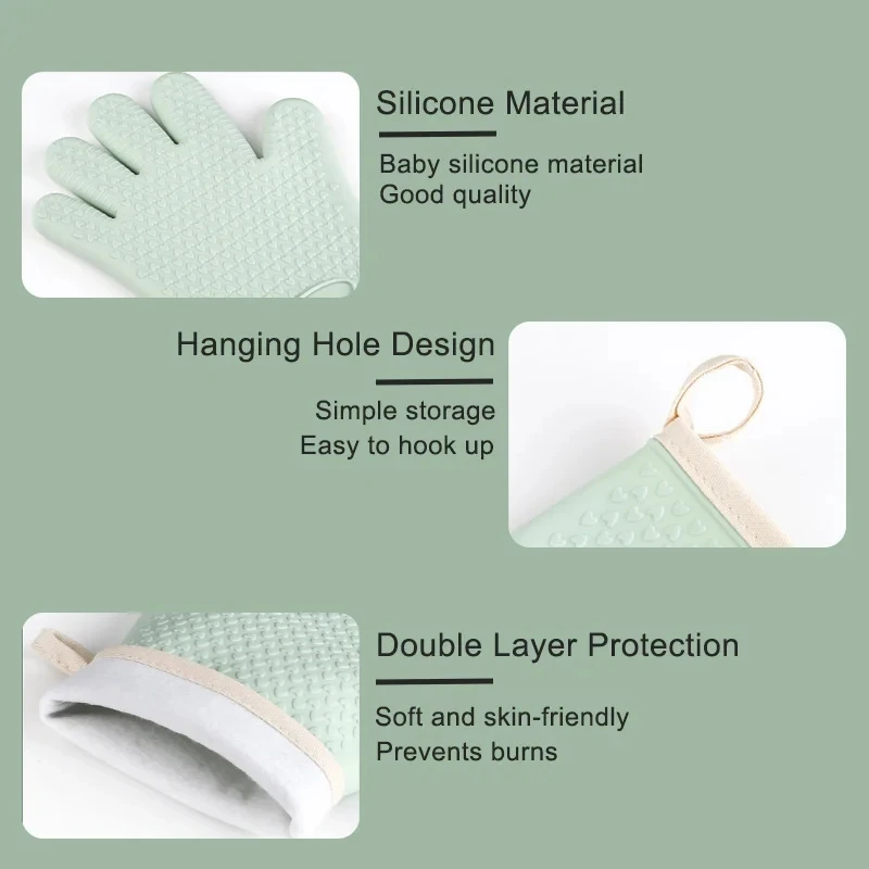 1. Silicone Material :Crafted from high-quality silicone, these oven gloves offer superior heat resistance and durability, ensuring long-lasting use in your kitchen.