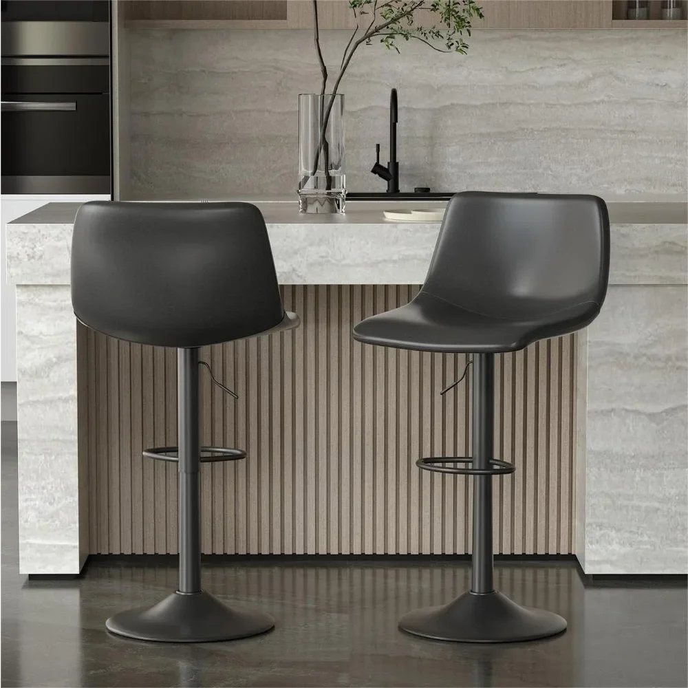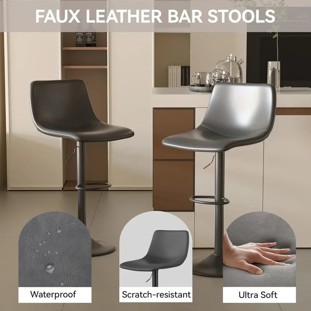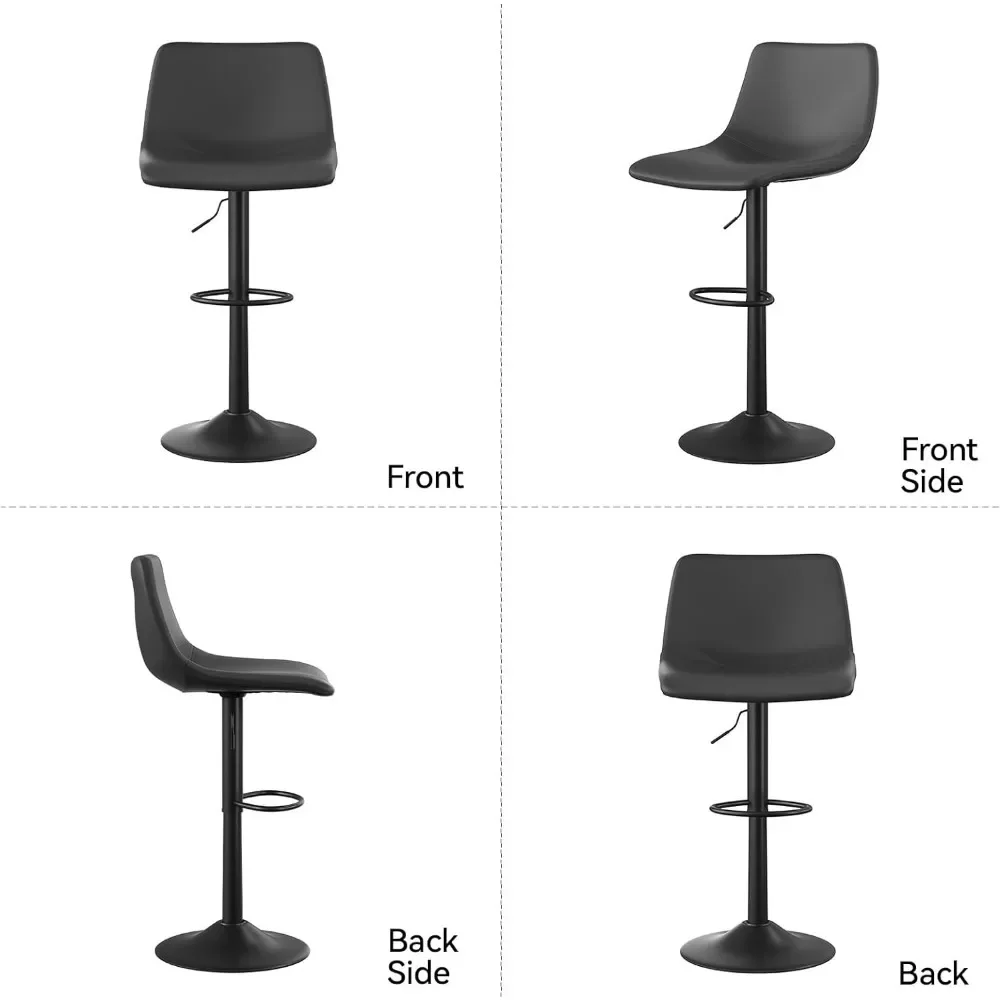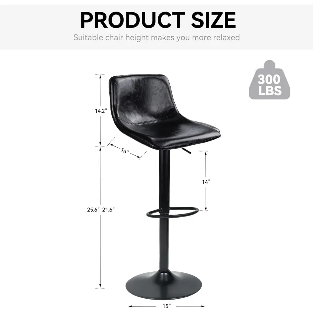 bar chair Set of 2, Modern PU Leather Adjustable Swivel Bar Stool, Counter Height Barstools for Home Kitchen Island, Black